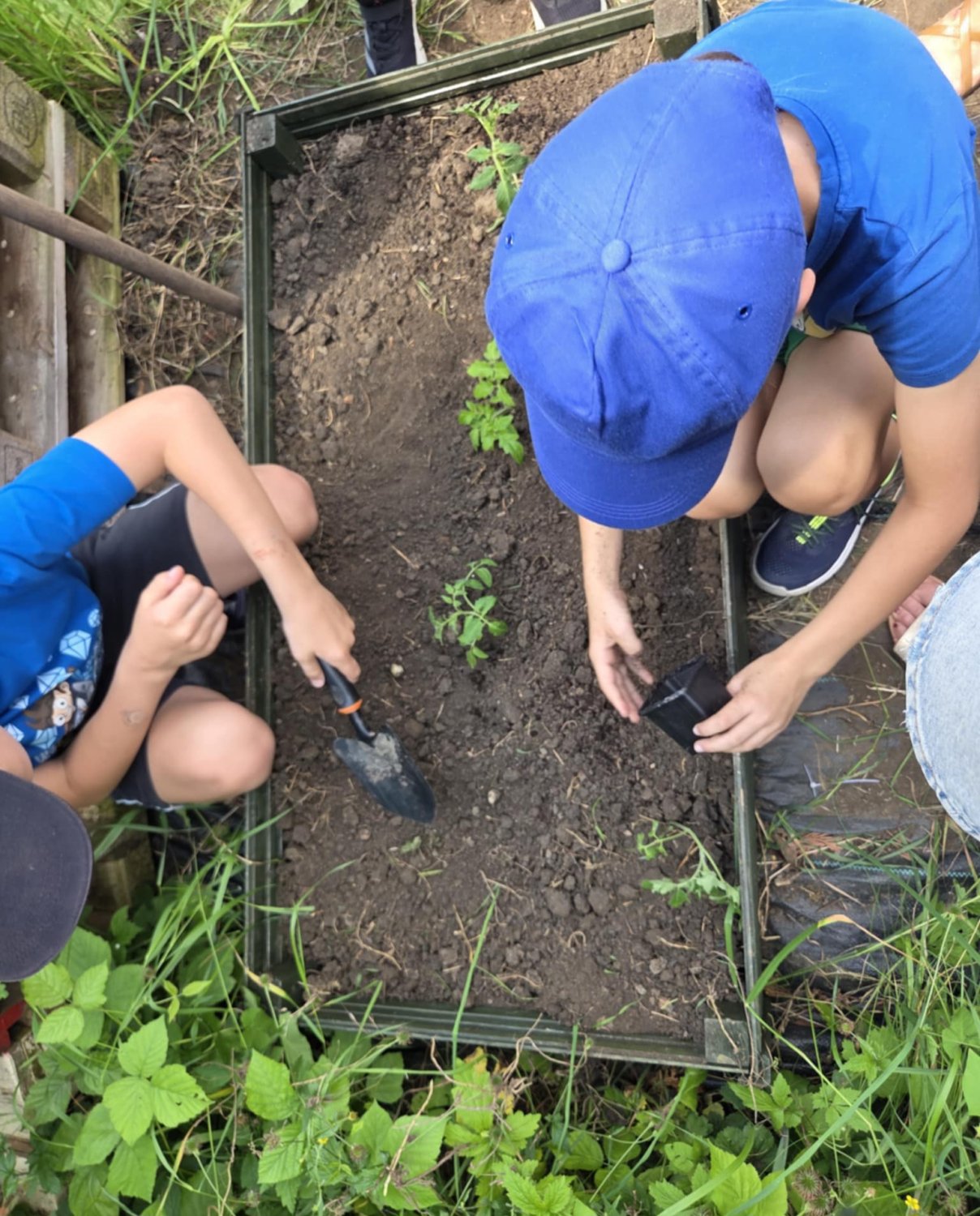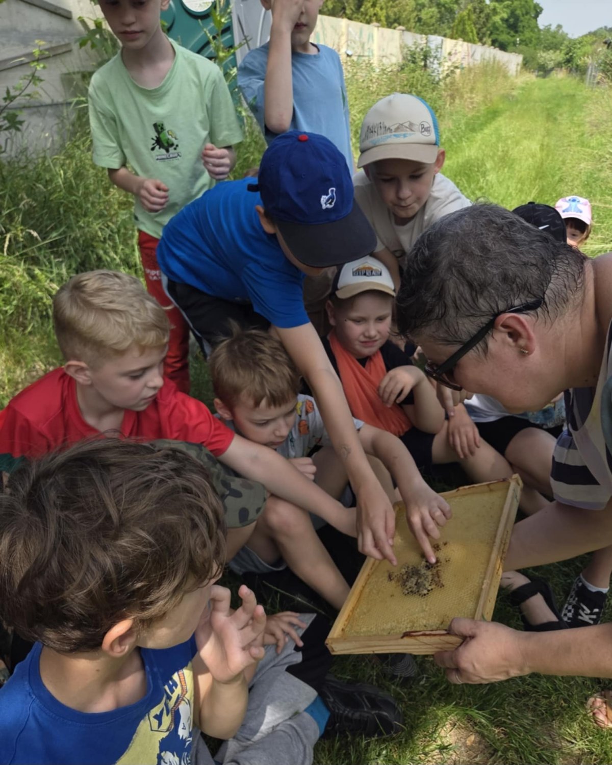 Uczniowie klasy 2C odwiedzili ogródki działkowe "Różanecznik", gdzie aktywnie uczestniczyli w pracach ogrodniczych. Sadzenie sadzonek pomidorów, pielenie grządek oraz podlewanie roślin sprawiły dzieciom wiele radości i były doskonałą okazją do nauki przez działanie. Podczas wizyty uczniowie rozmawiali również o pszczołach i innych owadach zapylających, dowiadując się, jak ogromne znaczenie mają one dla środowiska i uprawy roślin. To była cenna lekcja przyrody w praktyce!