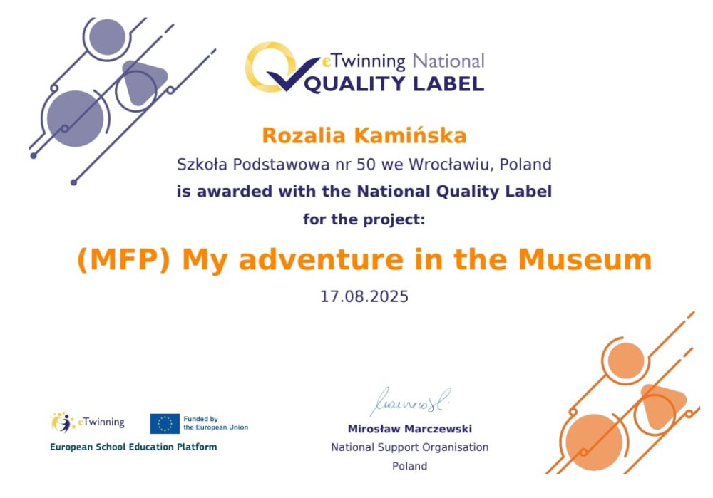 Z radością informujemy, że Rozalia Kamińska otrzymała Krajową Odznakę Jakości eTwinning.