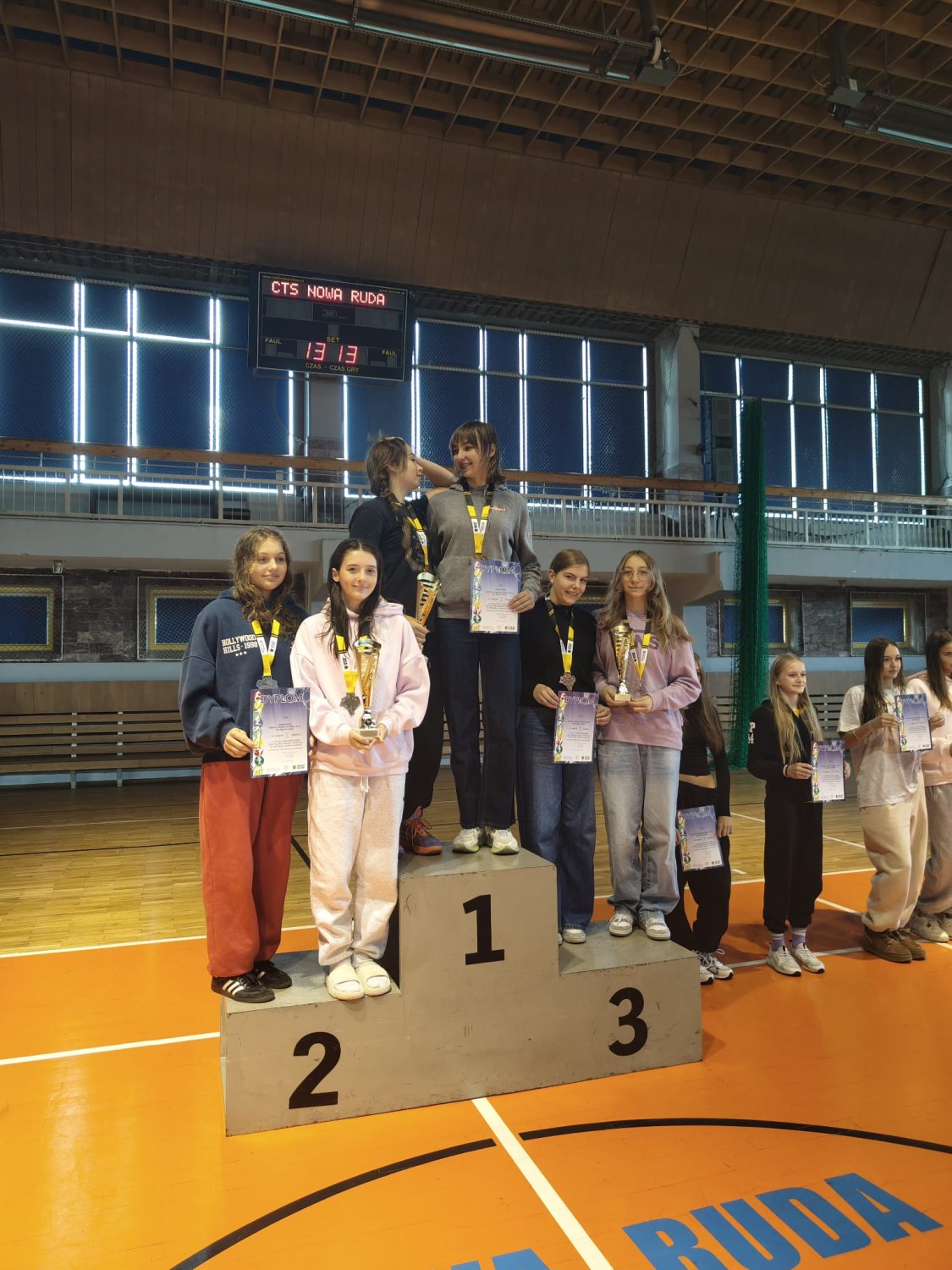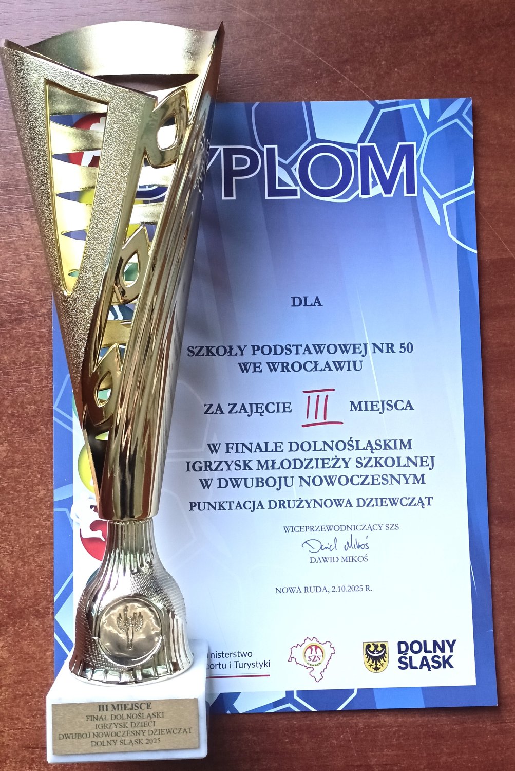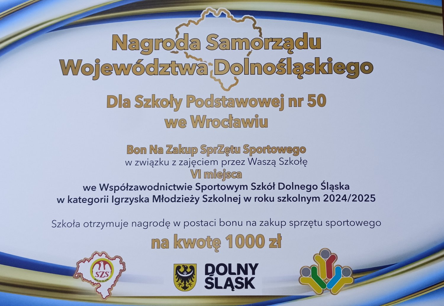 Podczas rozgrywania zawodów zostały rozdane nagrody za poprzedni rok szkolny. We współzawodnictwie sportowym szkół Dolnego Śląska nasza placówka zajęła VI miejsce w igrzyskach młodzieży szkolnej i VIII miejsce w igrzyskach dzieci. Oprócz pamiątkowych statuetek otrzymaliśmy 2 bony na zakup sprzętu sportowego.