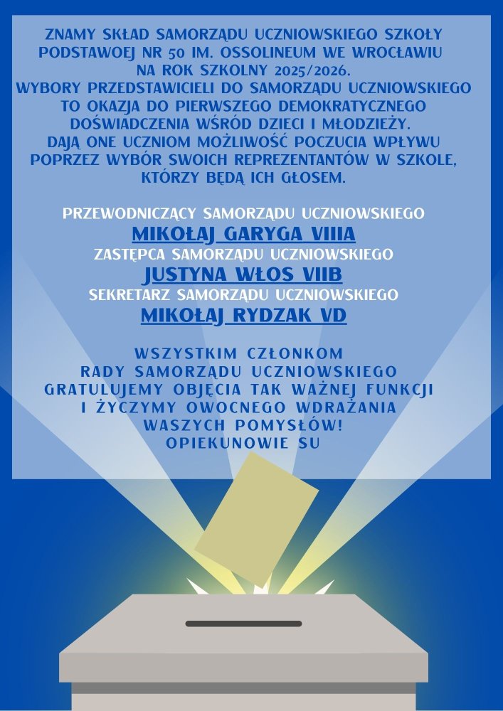 ZNAMY SKŁAD SAMORZĄDU UCZNIOWSKIEGO SZKOŁY PODSTAWOEJ NR 50 IM. OSSOLINEUM WE WROCŁAWIU