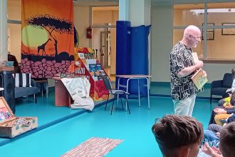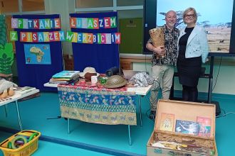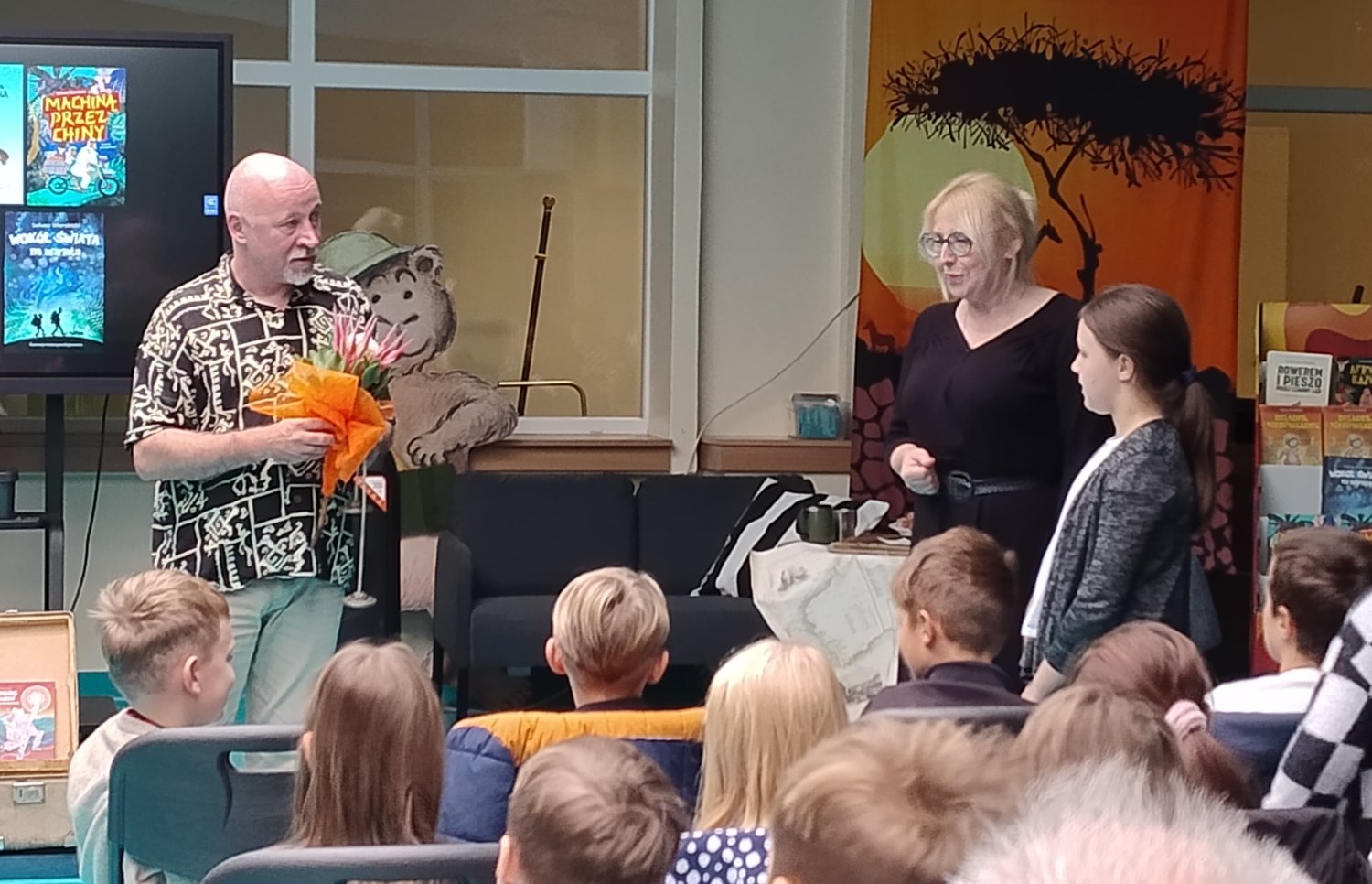 Uczniowie podziękowali pisarzowi brawami, życzeniami oraz kwiatami pochodzącymi z Afryki.