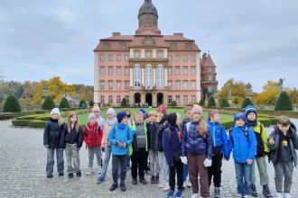 W dniu 16 października odwiedziliśmy trzeci co do wielkości zamek w Polsce – Zamek Książ. Zwiedzając zamek oglądaliśmy obrazy i zdjęcia rodziny Hochbergów i wysłuchaliśmy krótkiej historii zamku. Zwiedzanie było połączone z zabawami i zadaniami.