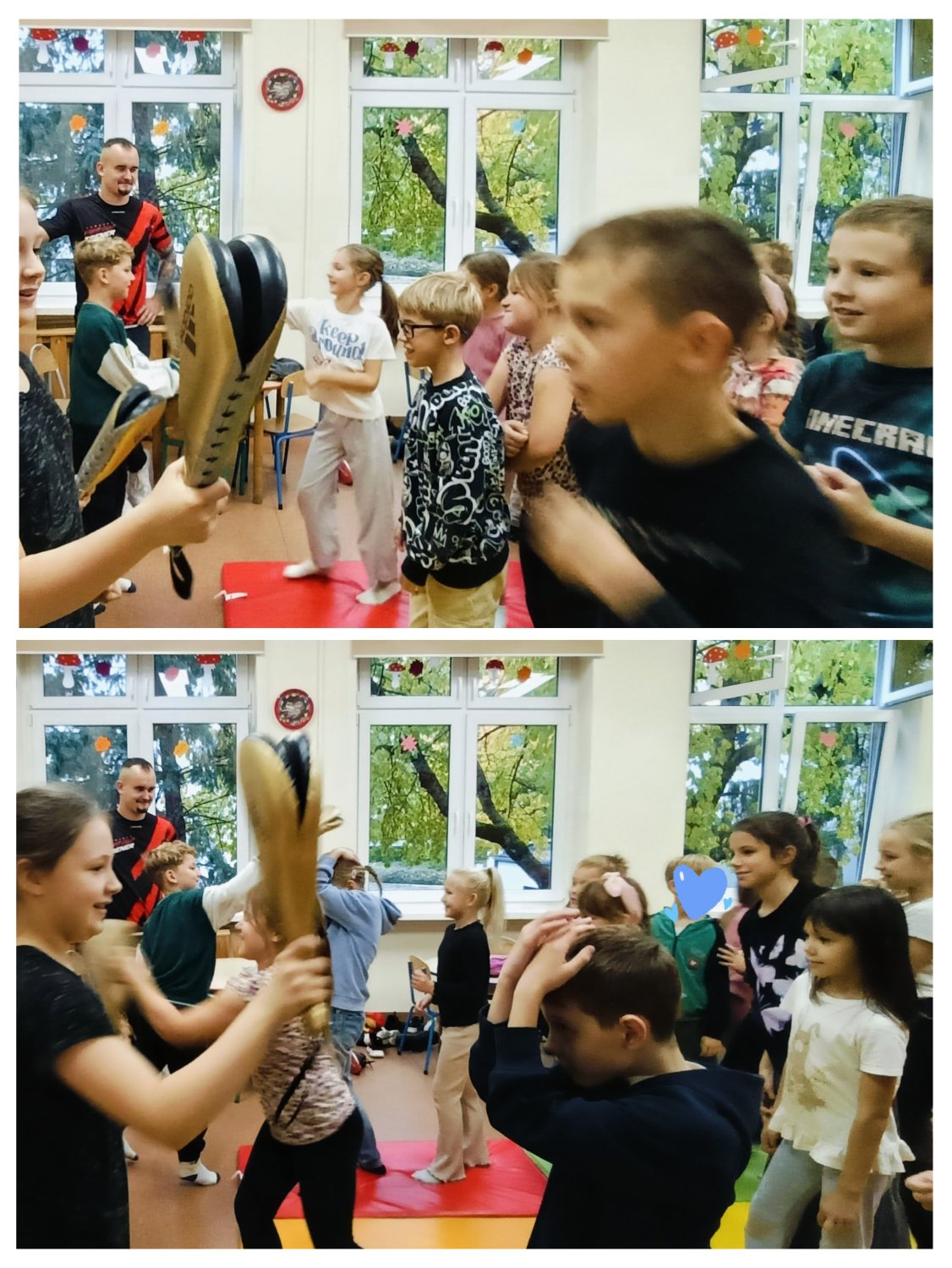 Pełen umiejętności i zaangażowania trener zapoznał świetliczaki z wyjątkowym sportem – KICKBOXING, który łączy bokserskie ciosy pięściami z kopnięciami. Rozwija siłę, szybkość, wytrzymałość i koordynację, a także pozytywnie wpływa na rozwój psychiczny, zwiększając pewność siebie i ucząc panowania nad stresem. Początki dyscypliny sięgają dalekiej Japonii.
