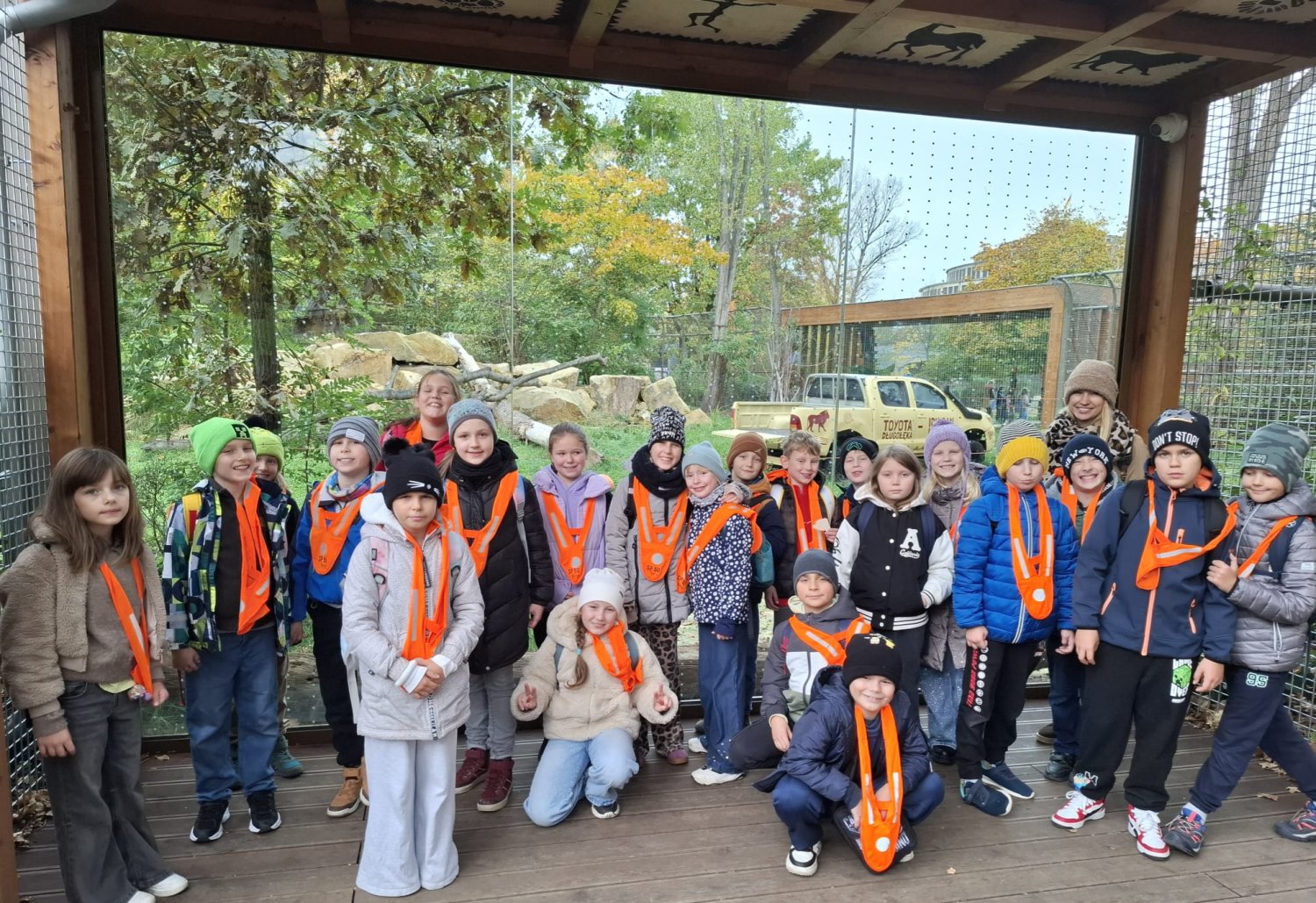 Uczniowie klas 3b i 3c wzięli udział w fascynujących warsztatach przyrodniczych pod tytułem „Zmysły w świecie zwierząt”, które odbyły się w ogrodzie zoologicznym. Podczas zajęć dzieci dowiedziały się, w jaki sposób zwierzęta odbierają otaczający je świat, jak wykorzystują wzrok, słuch, węch, dotyk i smak, by przetrwać w naturze. Warsztaty połączyły naukę z zabawą – dzieci brały udział w doświadczeniach, zadaniach sensorycznych i quizach przyrodniczych.