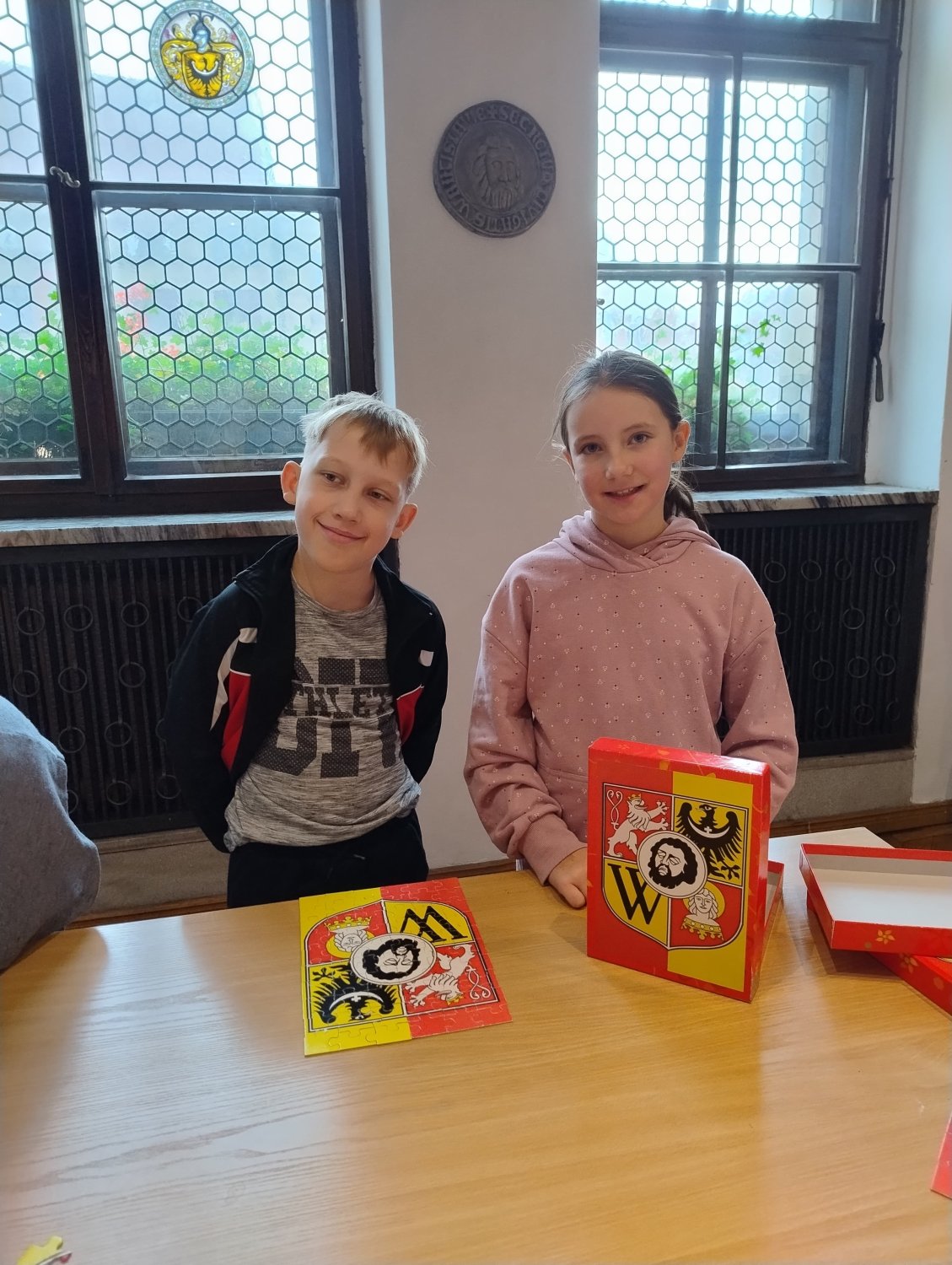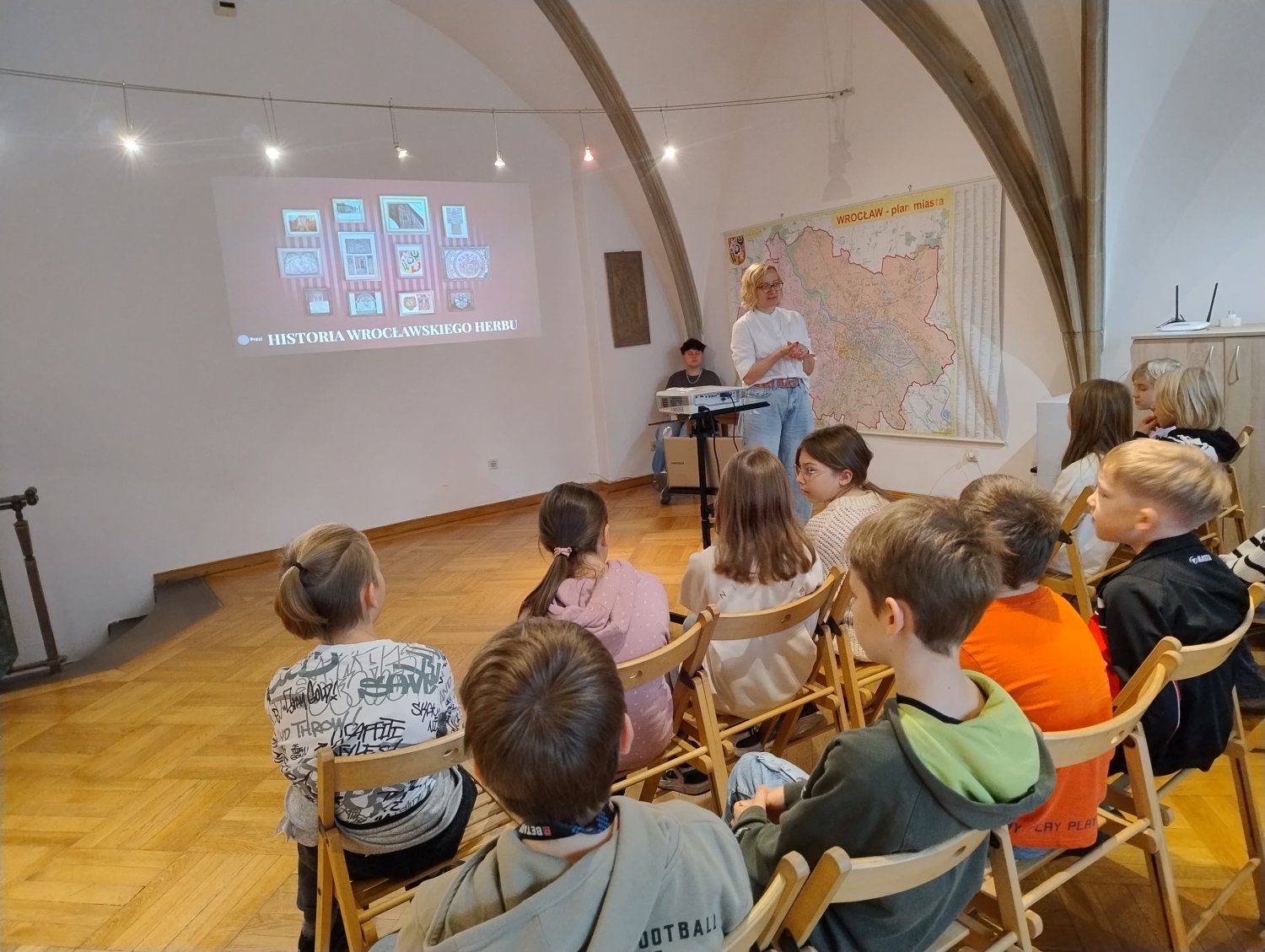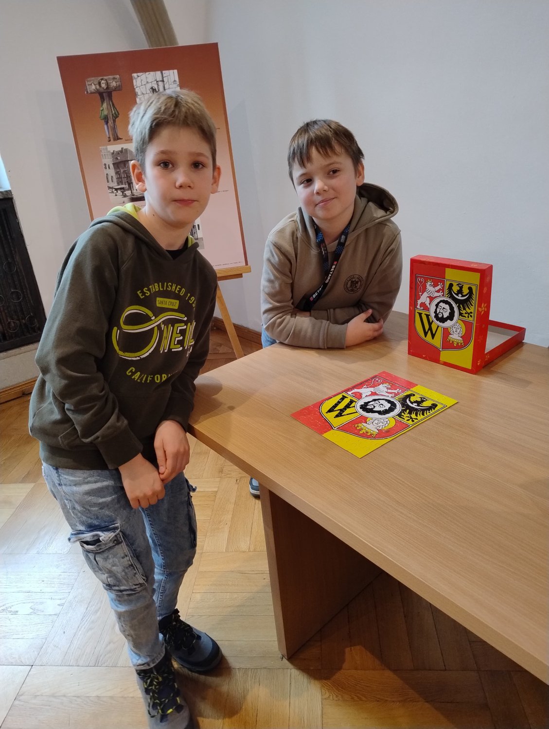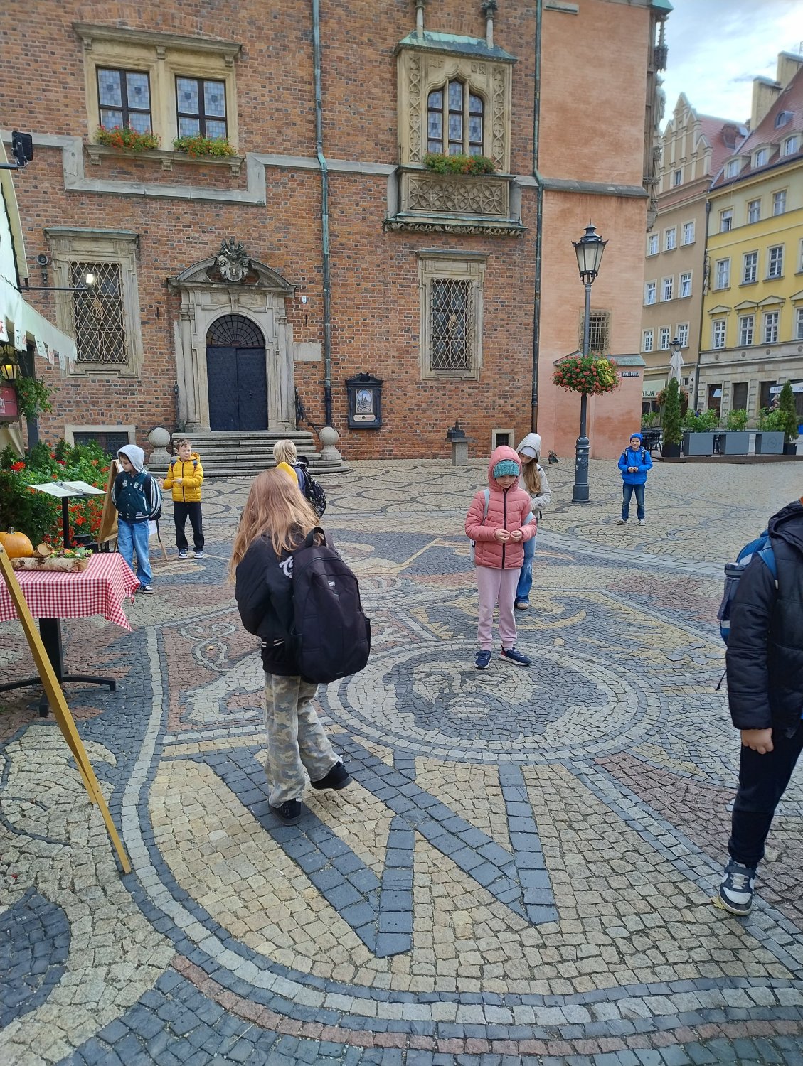 Kl. 3 D poznała historię herbu Wrocławia na lekcji muzealnej w Muzeum Sztuki Mieszczańskiej w Starym Ratuszu. Pani przewodnik w ciekawy sposób zdradziła tajniki i opowiedziała historię i legendy związane z powstaniem herbu naszego miasta. Pracując w dwuosobowych zespołach ułożyliśmy z puzzli herb. Przechodząc przez Rynek odnaleźliśmy herb na: wieży Ratusza, pokrywach studzienek kanalizacyjnych, latarniach, tramwajach, historycznych budynkach. Jednak największy herb znajduje się na bruku przed wejściem do Ratusza. Z pamiątkami zakupionymi w muzealnym sklepiku i głową pełną wiedzy wróciliśmy do szkoły.