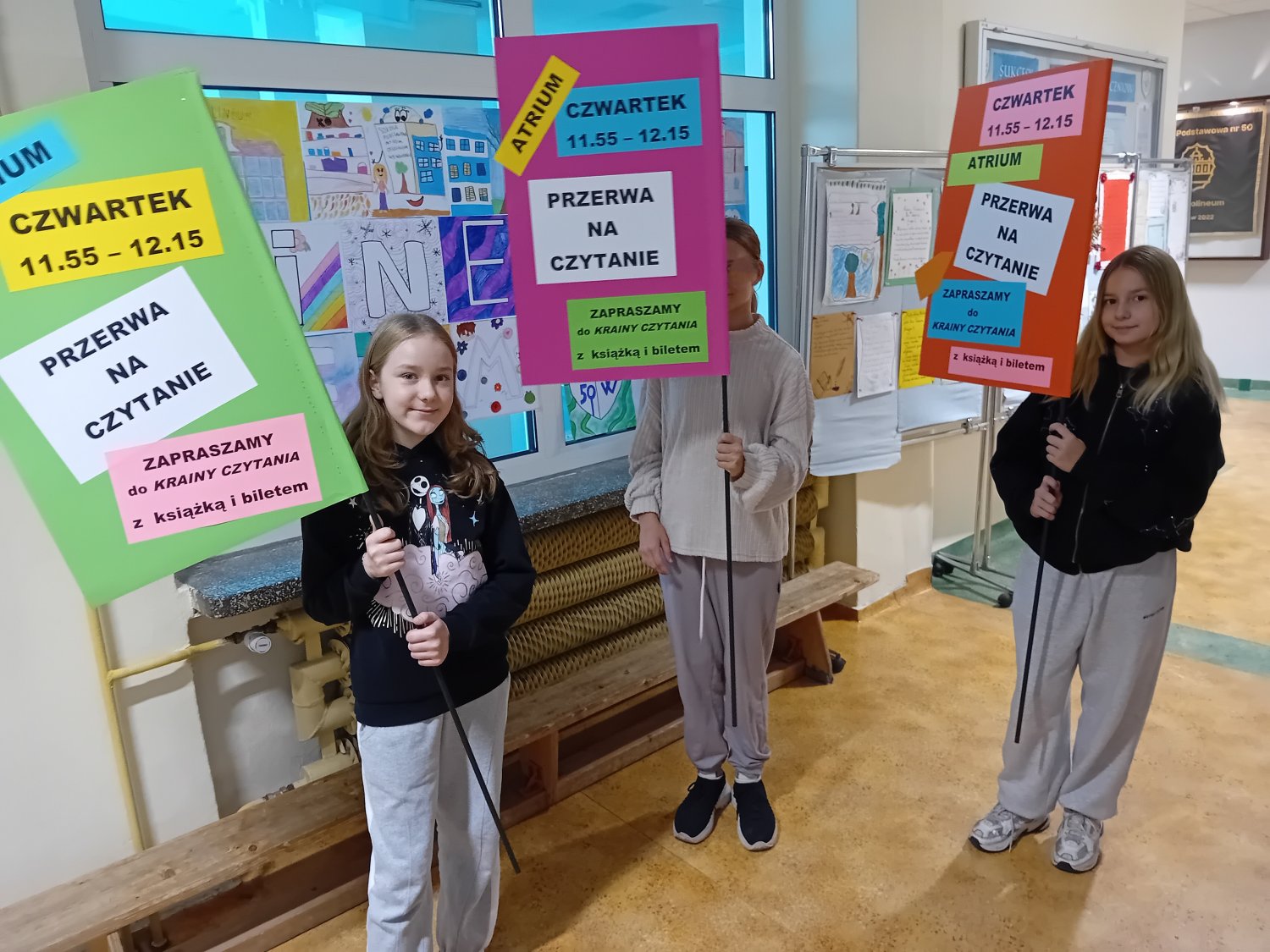 Podczas pierwszej długiej przerwy atrium zamieniło się w Krainę Czytania.