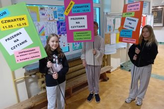 Zachęcamy wszystkich uczniów do sięgania po książki i czytania podczas przerw.