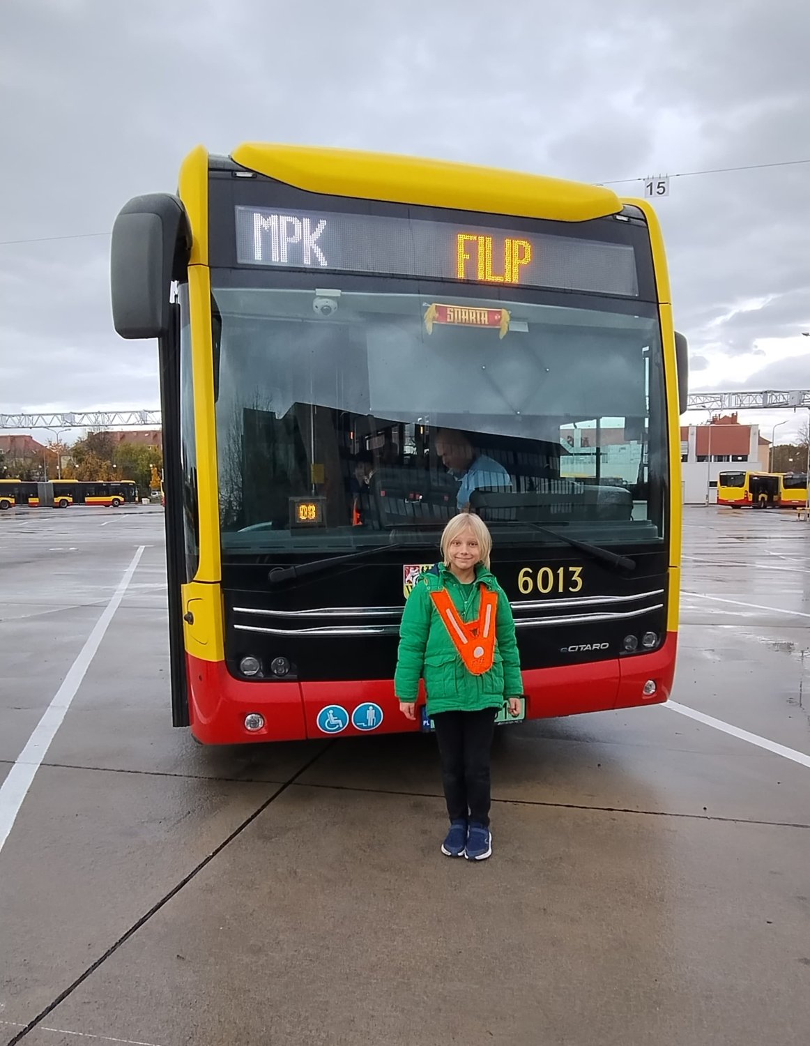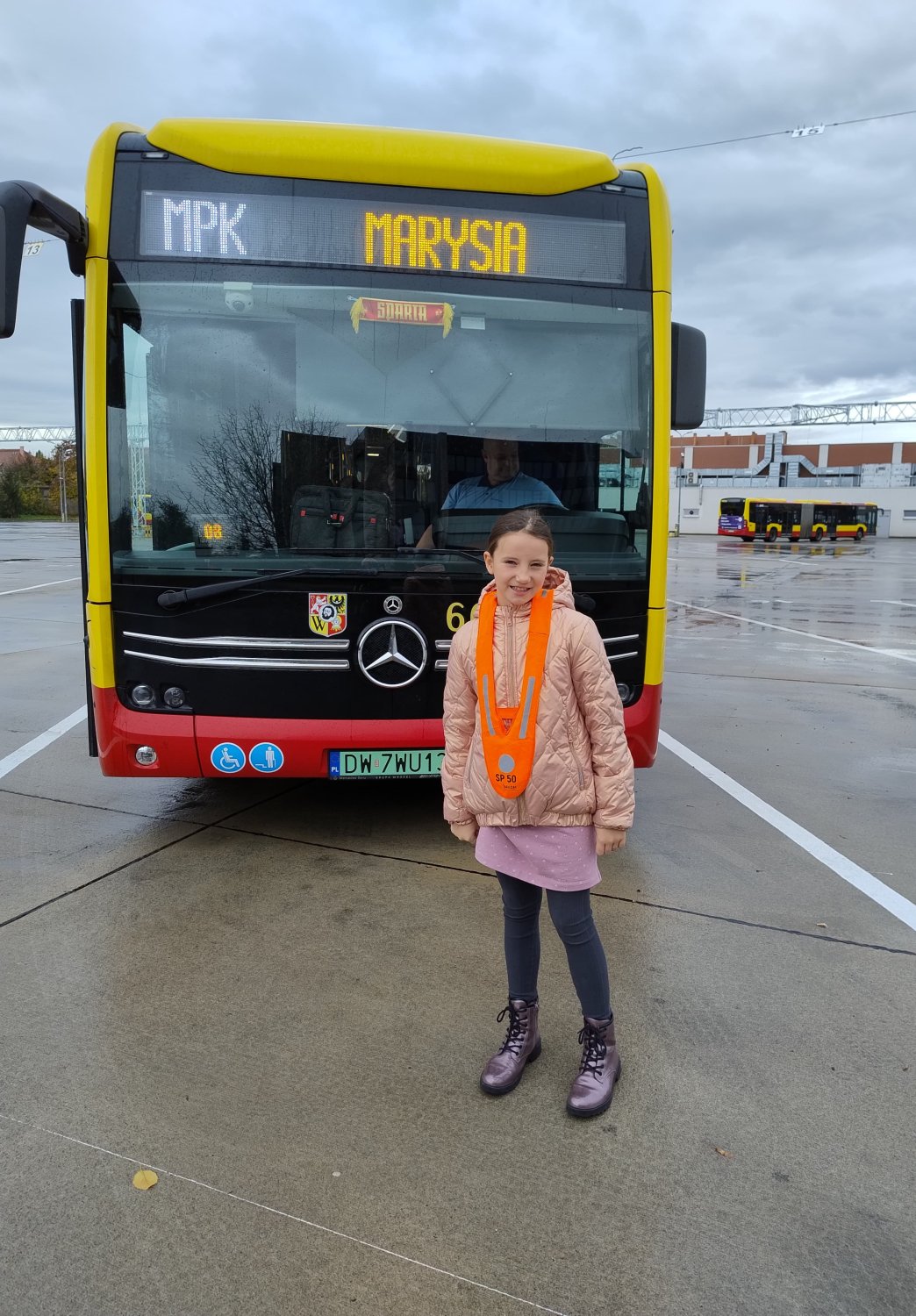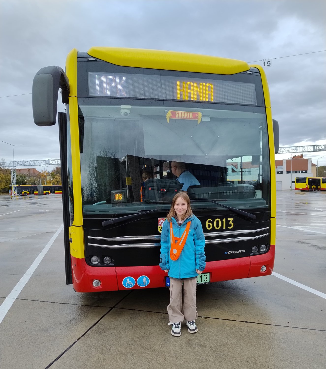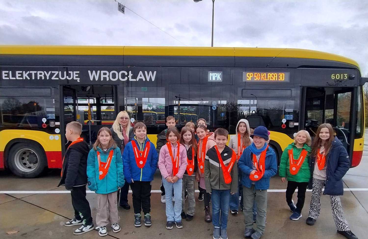 Dn. 30.10.2025 r. Kl 3 D poznała tajniki Zajezdni Autobusowej przy ul. Obornickiej 131. Zwiedzanie rozpoczęliśmy od dyspozytorni i wraz z p. Darkiem i p. Marcinem pojechaliśmy elektrycznym autobusem na stację tankowania, do hali drobnych przeglądów i na myjnię. Pan przewodnik opowiedział o pracujących tu fachowcach. Przejechaliśmy przez plac manewrowy, do elektrycznego ładowania autobusów, widzieliśmy zabytkowy czerwony Ogórek - autobus symbol historycznego strajku MPK przy ul. Grabiszyńskiej. Otrzymaliśmy garść wskazówek, jak bezpiecznie zachowywać się w pojazdach MPK. Największą radość sprawiła nam sesja zdjęciowa z wyświetlanymi naszymi imionami oraz zajęcie miejsca za kierownicą autobusu przegubowego. Dziękujemy p. Rinie Angelow-Rapicie i p. Natalii Gajdzie z Biura Promocji i Sprzedaży MPK Wrocław za możliwość odbycia takiej wspaniałej wycieczki!