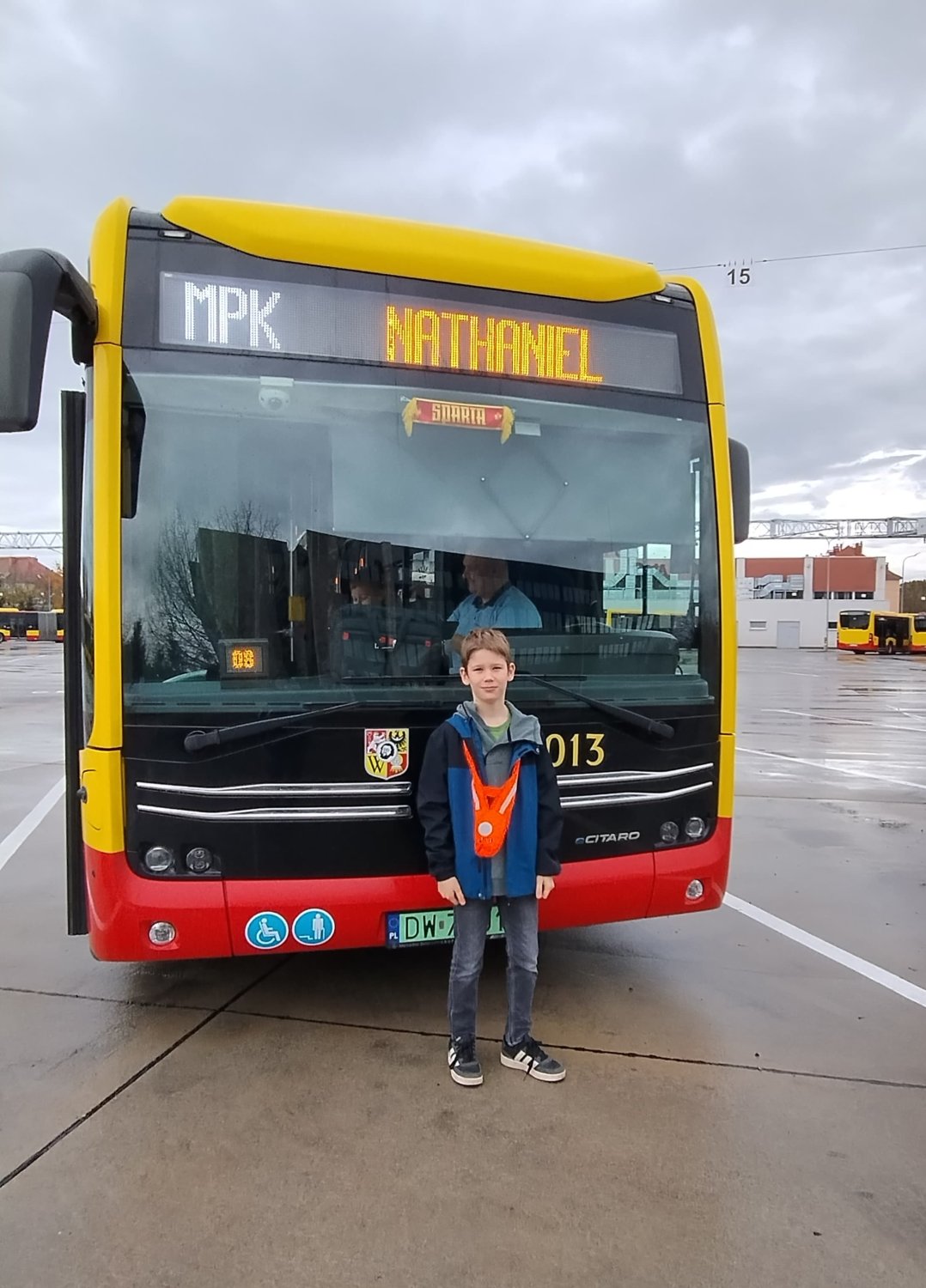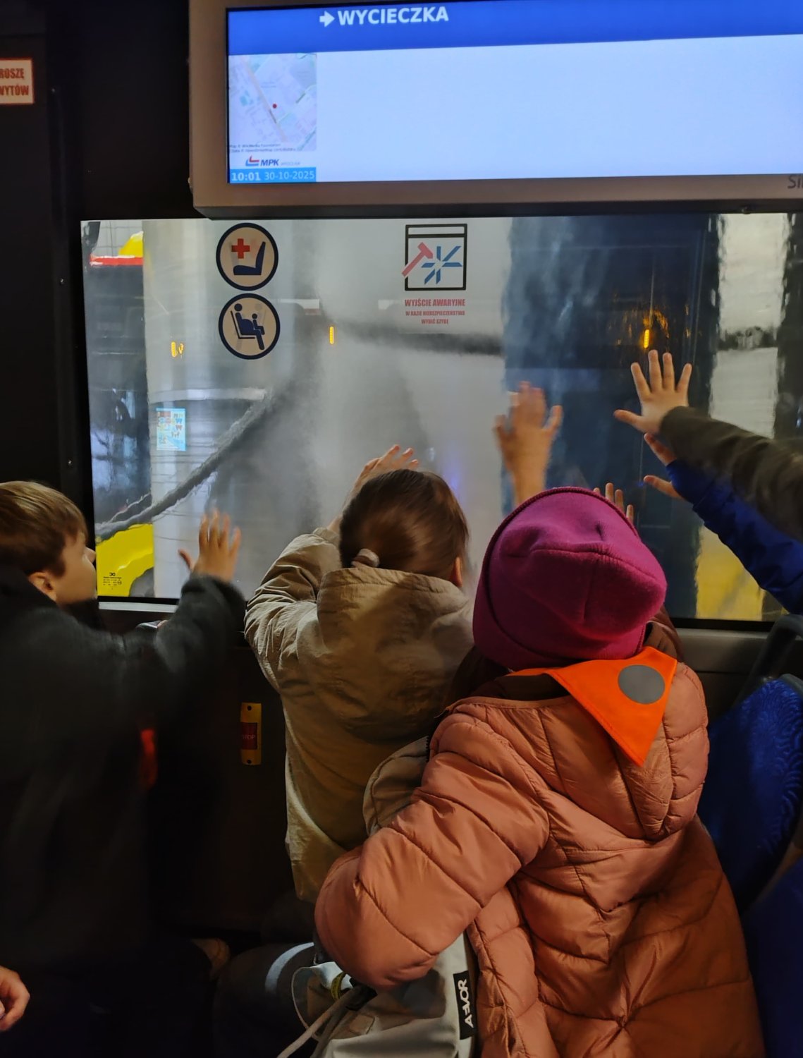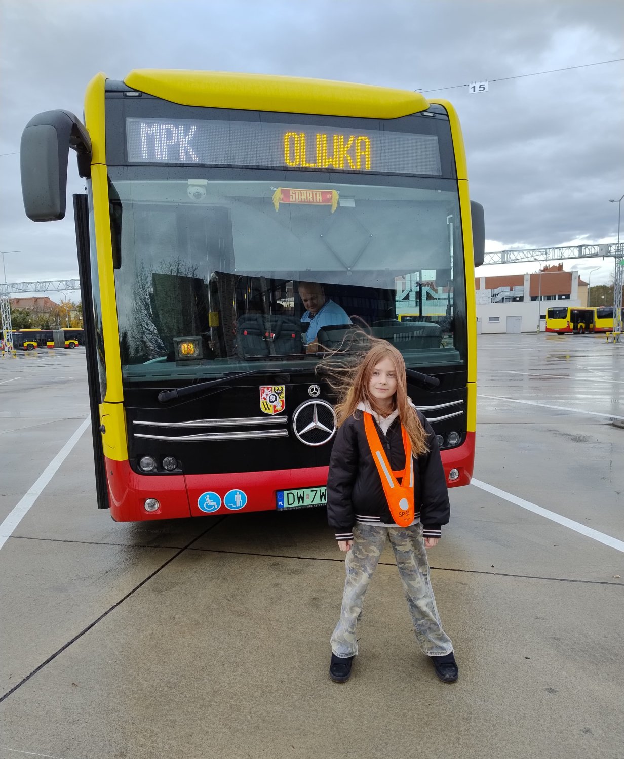 Dn. 30.10.2025 r. Kl 3 D poznała tajniki Zajezdni Autobusowej przy ul. Obornickiej 131. Zwiedzanie rozpoczęliśmy od dyspozytorni i wraz z p. Darkiem i p. Marcinem pojechaliśmy elektrycznym autobusem na stację tankowania, do hali drobnych przeglądów i na myjnię. Pan przewodnik opowiedział o pracujących tu fachowcach. Przejechaliśmy przez plac manewrowy, do elektrycznego ładowania autobusów, widzieliśmy zabytkowy czerwony Ogórek - autobus symbol historycznego strajku MPK przy ul. Grabiszyńskiej. Otrzymaliśmy garść wskazówek, jak bezpiecznie zachowywać się w pojazdach MPK. Największą radość sprawiła nam sesja zdjęciowa z wyświetlanymi naszymi imionami oraz zajęcie miejsca za kierownicą autobusu przegubowego. Dziękujemy p. Rinie Angelow-Rapicie i p. Natalii Gajdzie z Biura Promocji i Sprzedaży MPK Wrocław za możliwość odbycia takiej wspaniałej wycieczki!