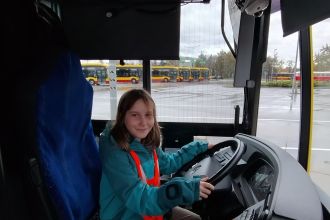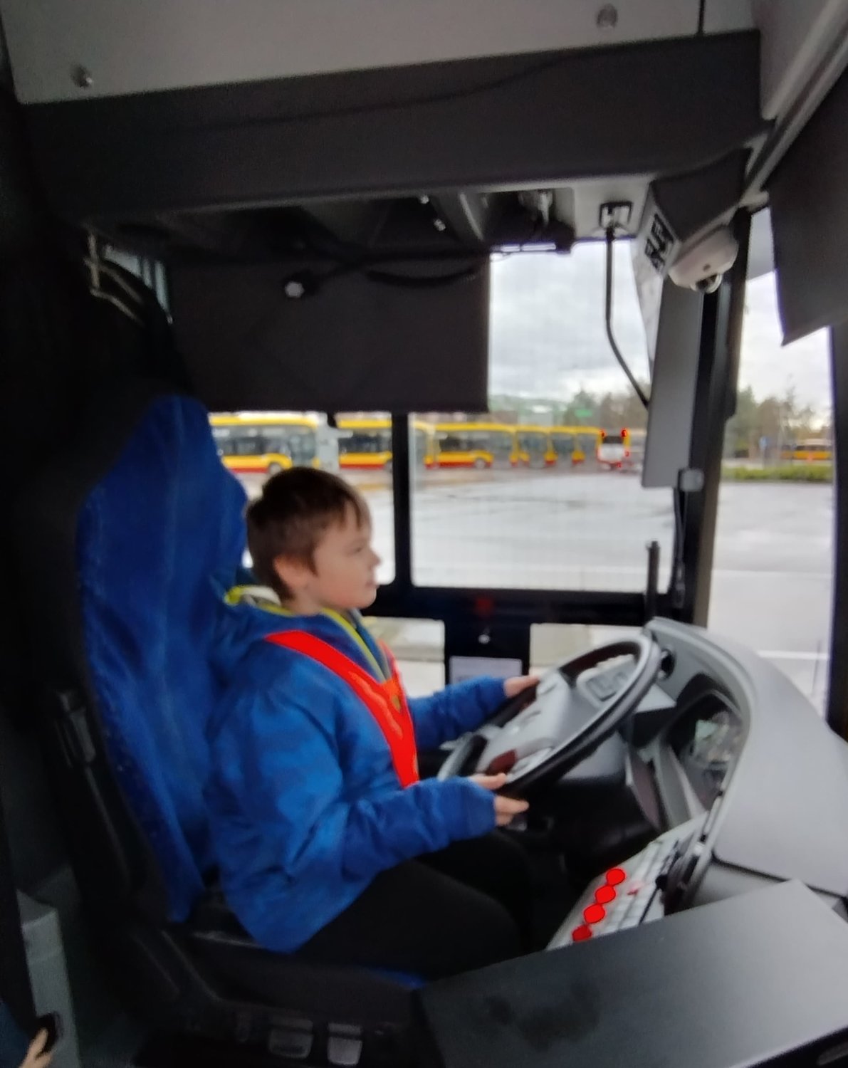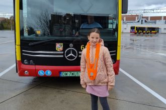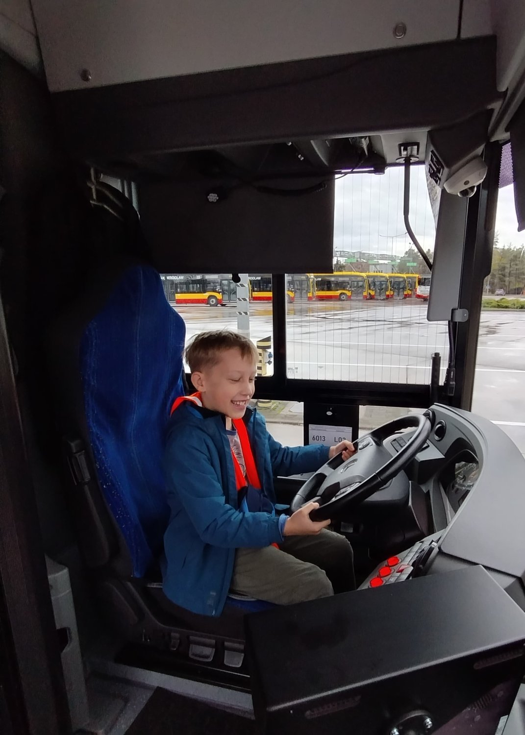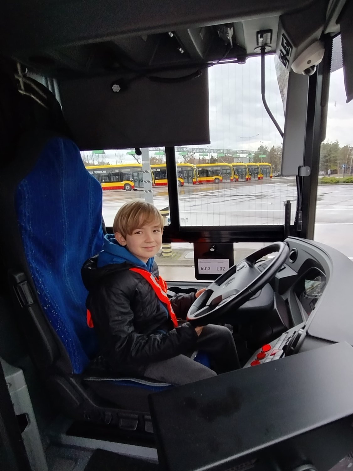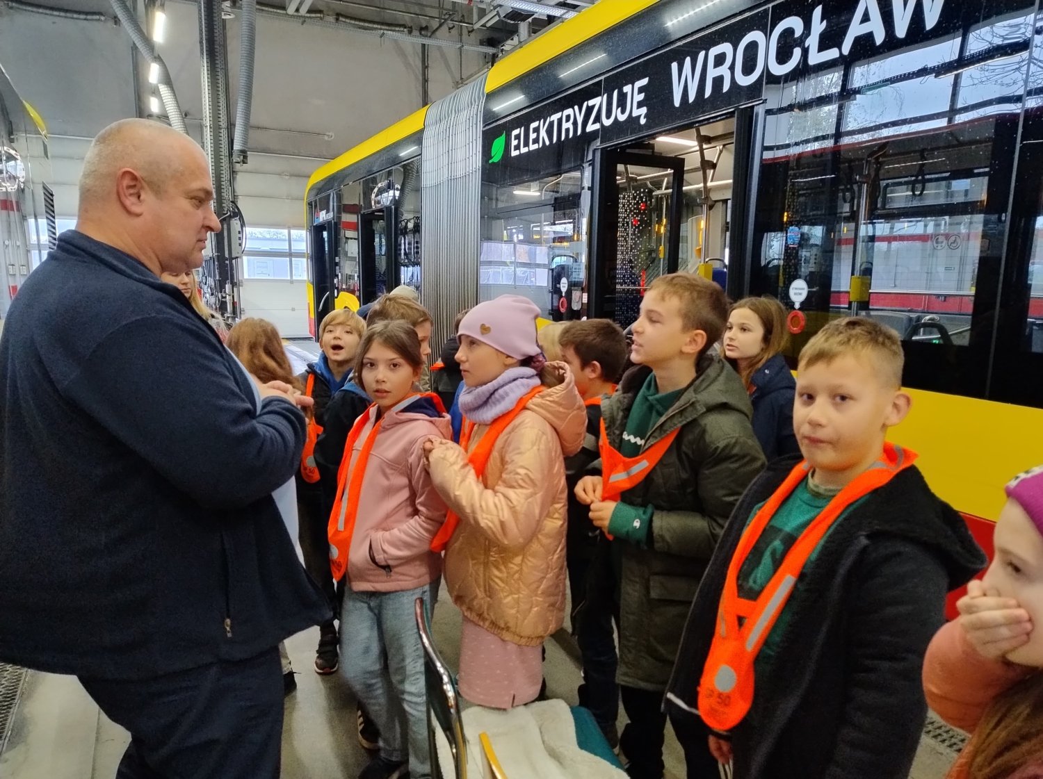 Dn. 30.10.2025 r. Kl 3 D poznała tajniki Zajezdni Autobusowej przy ul. Obornickiej 131. Zwiedzanie rozpoczęliśmy od dyspozytorni i wraz z p. Darkiem i p. Marcinem pojechaliśmy elektrycznym autobusem na stację tankowania, do hali drobnych przeglądów i na myjnię. Pan przewodnik opowiedział o pracujących tu fachowcach. Przejechaliśmy przez plac manewrowy, do elektrycznego ładowania autobusów, widzieliśmy zabytkowy czerwony Ogórek - autobus symbol historycznego strajku MPK przy ul. Grabiszyńskiej. Otrzymaliśmy garść wskazówek, jak bezpiecznie zachowywać się w pojazdach MPK. Największą radość sprawiła nam sesja zdjęciowa z wyświetlanymi naszymi imionami oraz zajęcie miejsca za kierownicą autobusu przegubowego. Dziękujemy p. Rinie Angelow-Rapicie i p. Natalii Gajdzie z Biura Promocji i Sprzedaży MPK Wrocław za możliwość odbycia takiej wspaniałej wycieczki!