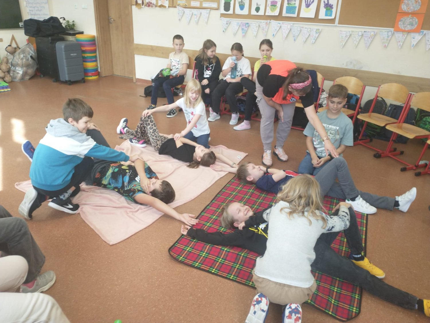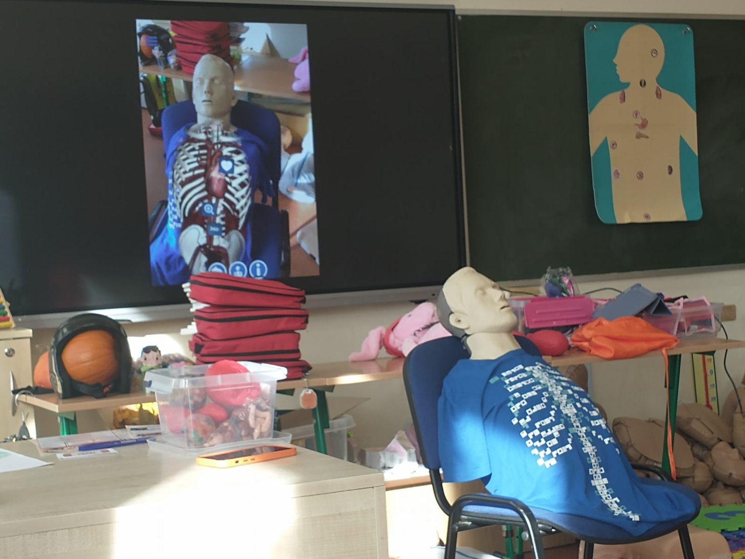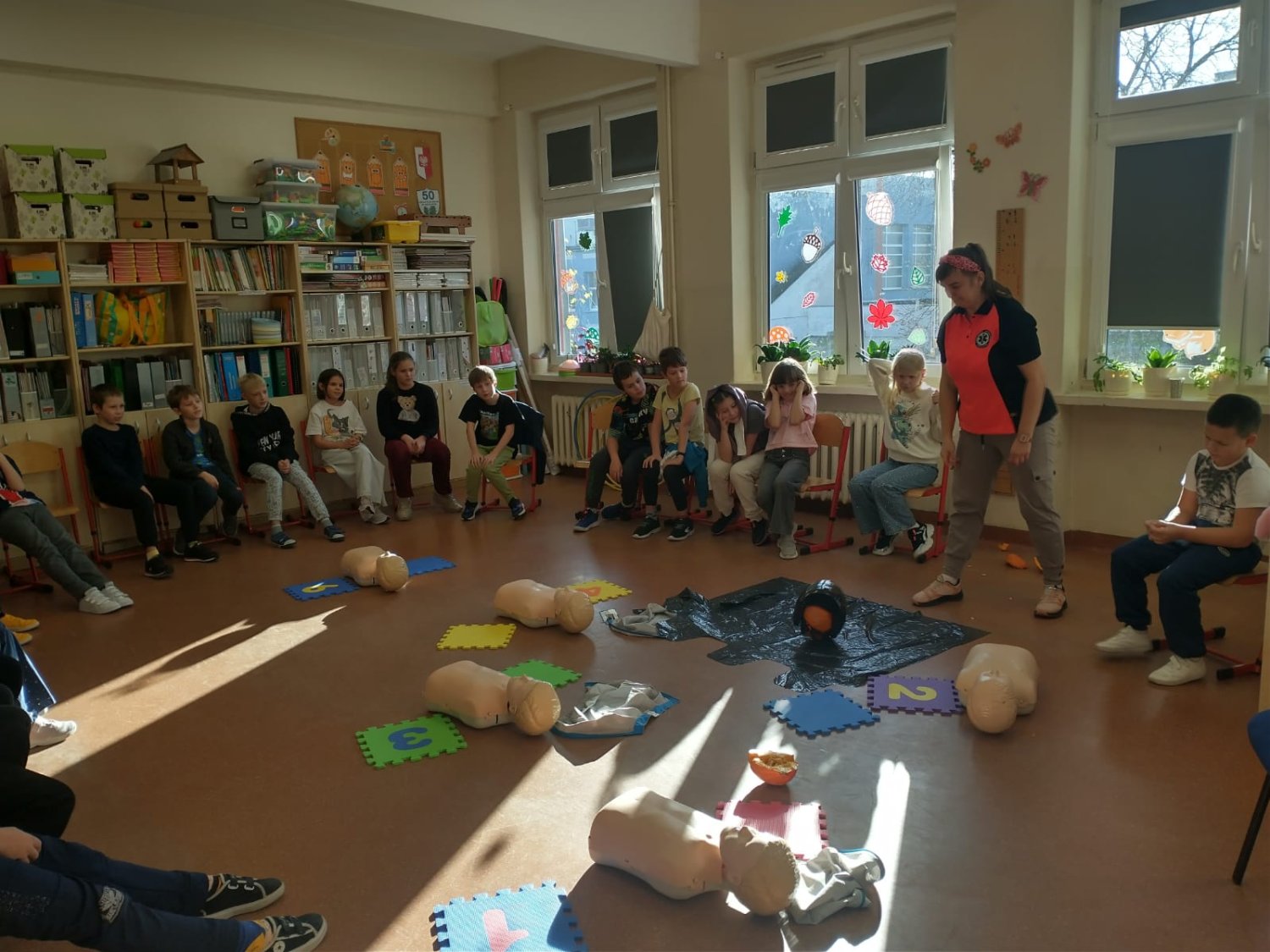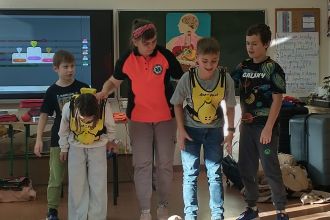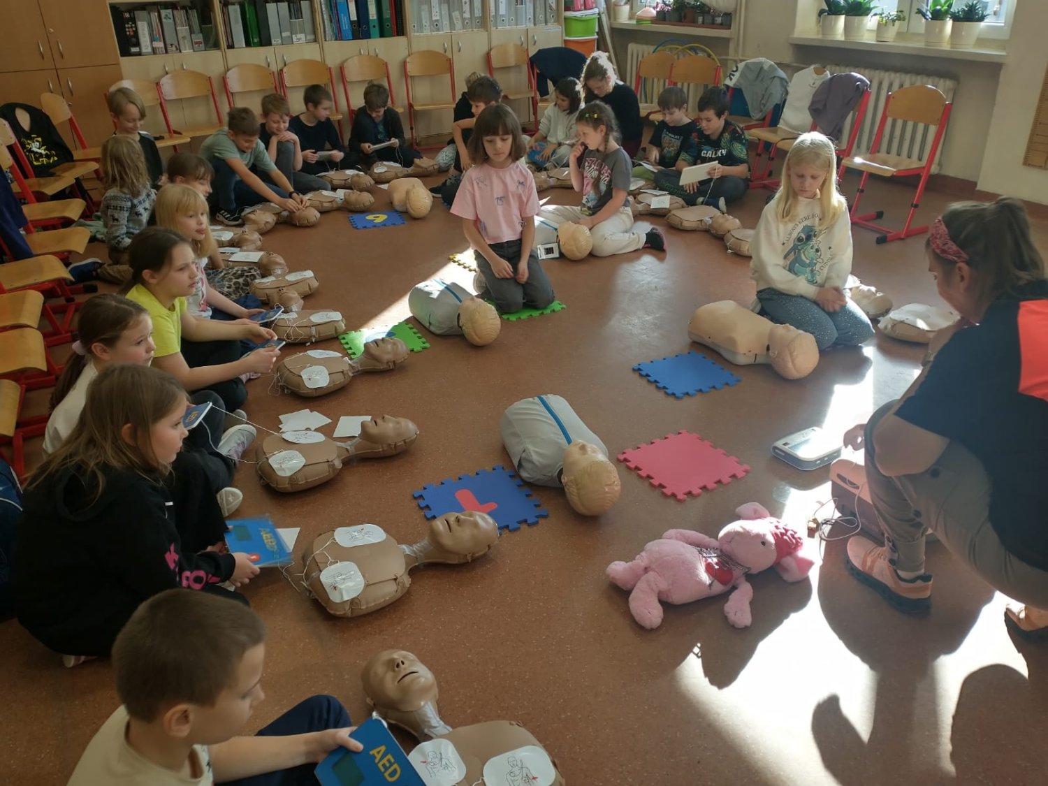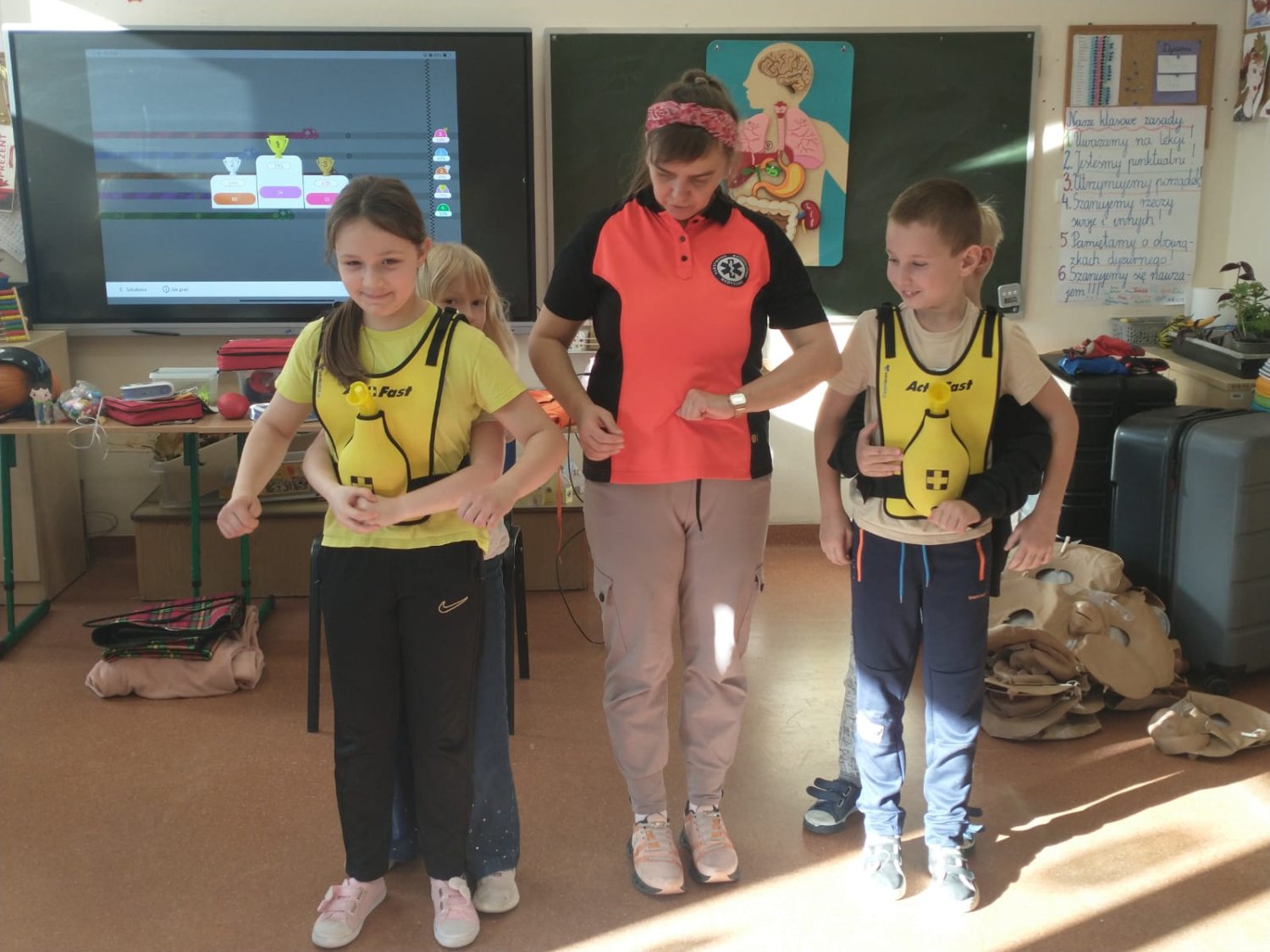 Dnia 5.11. klasa III B wzięła udział w warsztatach dotyczących udzielania pierwszej pomocy. Uczniowie dowiedzieli się, w jakich sytuacjach i w jaki sposób należy wzywać pogotowie oraz jak układać poszkodowanego w pozycji bezpiecznej. Samodzielnie przećwiczyli wykonywanie resuscytacji oraz defibrylacji. Nauczyli się także, jak udzielać pomocy w sytuacji zadławienia. Za pomocą wyjątkowych pomocy dydaktycznych i nowoczesnych narzędzi multimedialnych mieli szansę zajrzeć w głąb ludzkiego ciała i dowiedzieć się, gdzie umieszczone są poszczególne organy człowieka oraz jakie są ich zadania. Dzięki przeprowadzonemu doświadczeniu dzieci uzmysłowiły sobie, jak ważne jest noszenie kasku podczas jazdy na rowerze, deskorolce czy hulajnodze. Udział w warsztatach uświadomił im, że sami mogą stać się superbohaterami, a w ich działaniu tkwi moc ratowania ludzkiego życia.