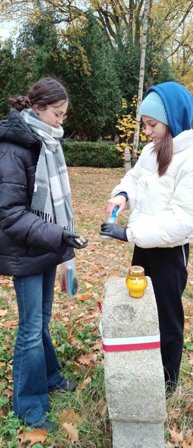 W dniu 28.10.2025 r. członkowie Szkolnego Klubu Wolontariusza wzięli udział w sprzątaniu zaniedbanych grobów na Cmentarzu Osobowickim w ramach akcji „Światełko zapomnianym”. To piękna tradycja naszej szkoły, która wpisana jest na stałe w kalendarz szkolnego wolontariatu. Uczniowie porządkowali mogiły tych, o których dziś nikt już nie pamięta. Były one oznaczone inicjałami N.N.. Zapalili także znicze na grobach żołnierzy straconych po II wojnie światowej. Była to doskonała okazja do refleksji nad wartościami takimi jak przemijanie, pamięć i szacunek. Dziękujemy wolontariuszom za ich zaangażowanie i poświęcenie. Jesteśmy dumni z Waszej postawy i wrażliwości.
