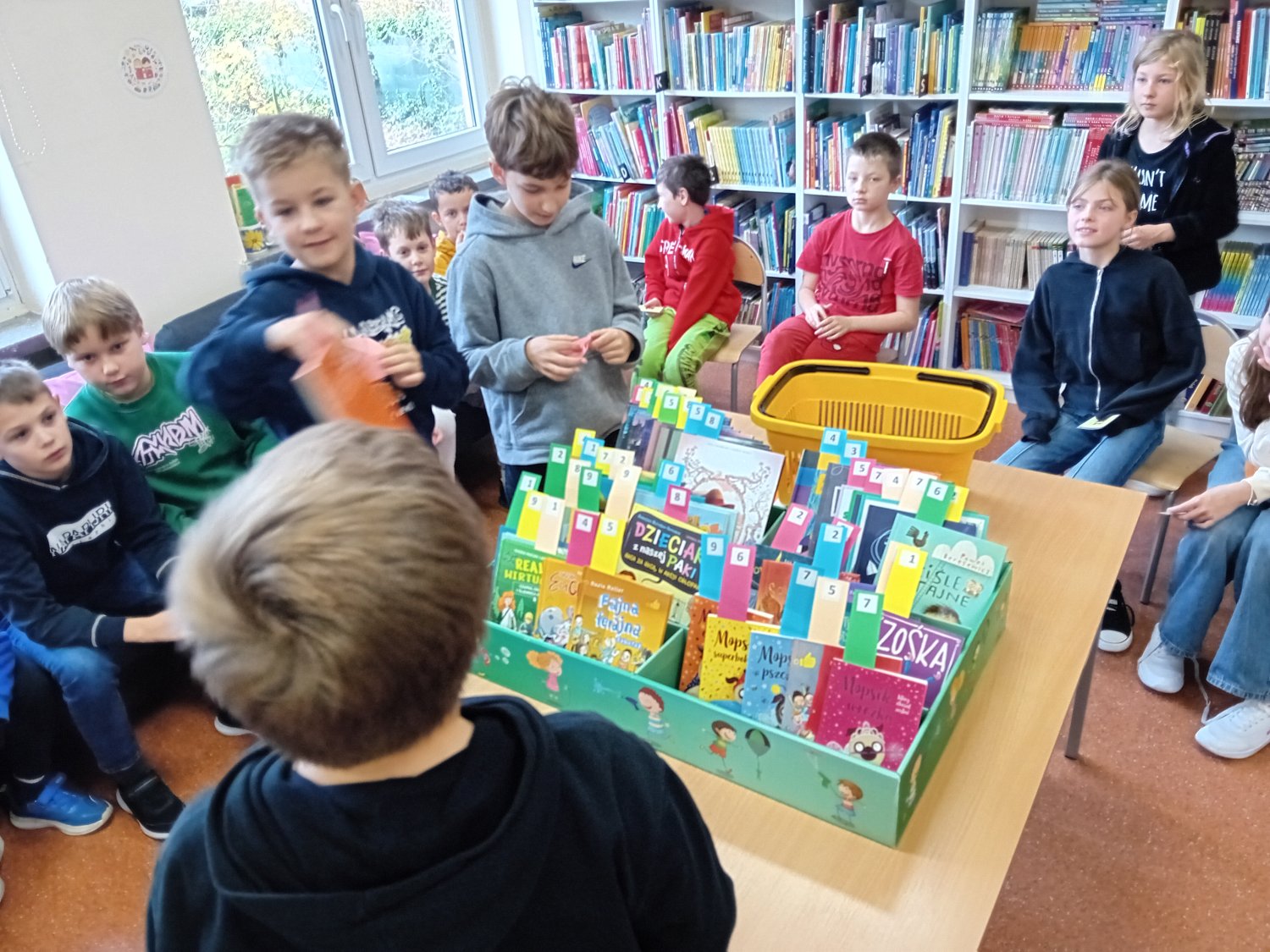 Wśród książek, które można było wylosować do przeczytania znalazło się wiele nowości wydawniczych zakupionych ze środków Narodowego Programu Rozwoju Czytelnictwa, w którym uczestniczy nasza Szkoła.