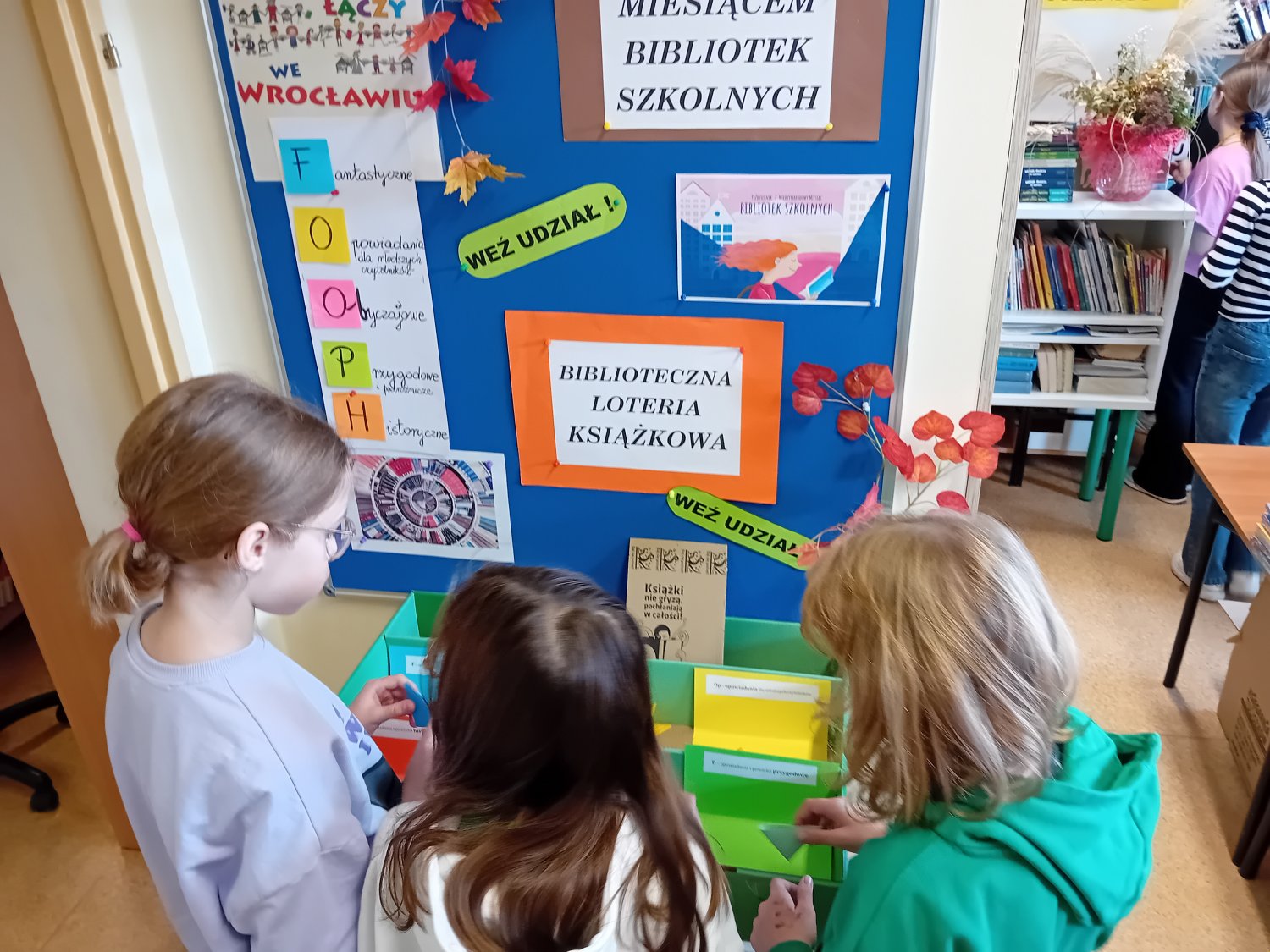 Tradycją w naszej Szkole stało się organizowanie z okazji ogłoszenia października Międzynarodowym Miesiącem Bibliotek Szkolnych - BIBLIOTECZNEJ LOTERII KSIĄŻKOWEJ dla klas IV-VIII.