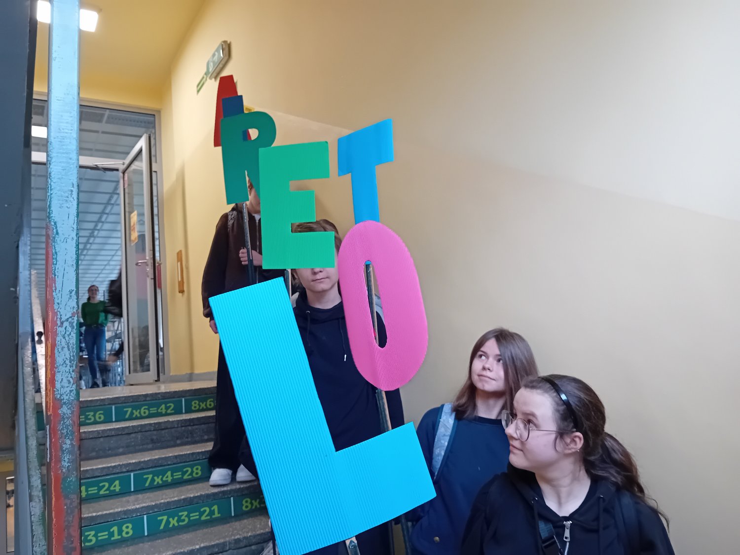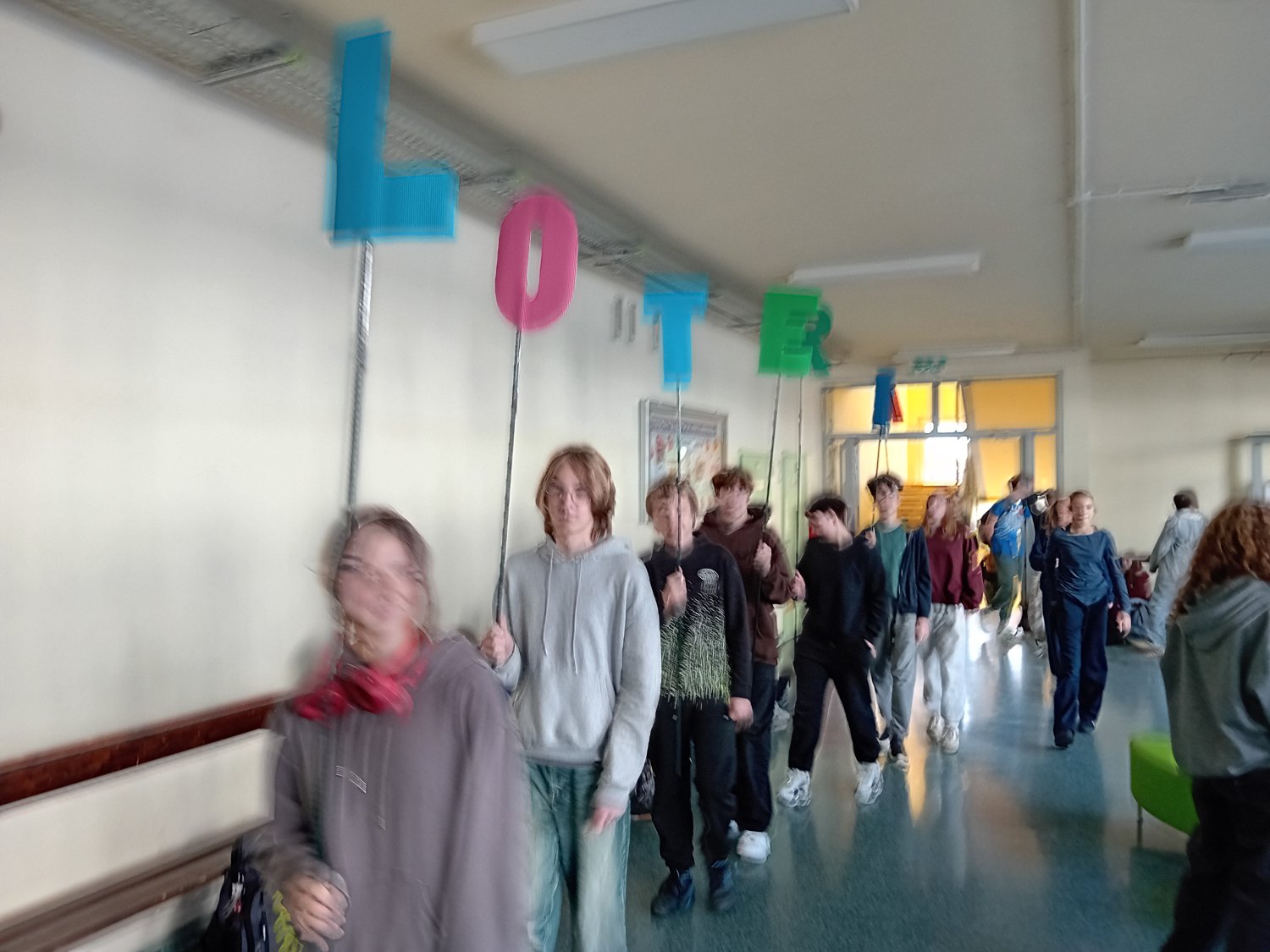 O tej akcji promującej czytelnictwo dużo wcześniej informowały przygotowane i wywieszone na korytarzu plakaty oraz wolontariusze ze starszych klas spacerujący podczas długich przerw z literami tworzącymi hasło: LOTERIA.