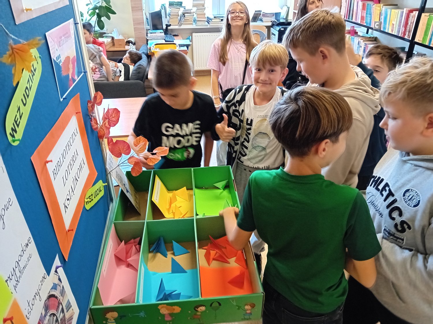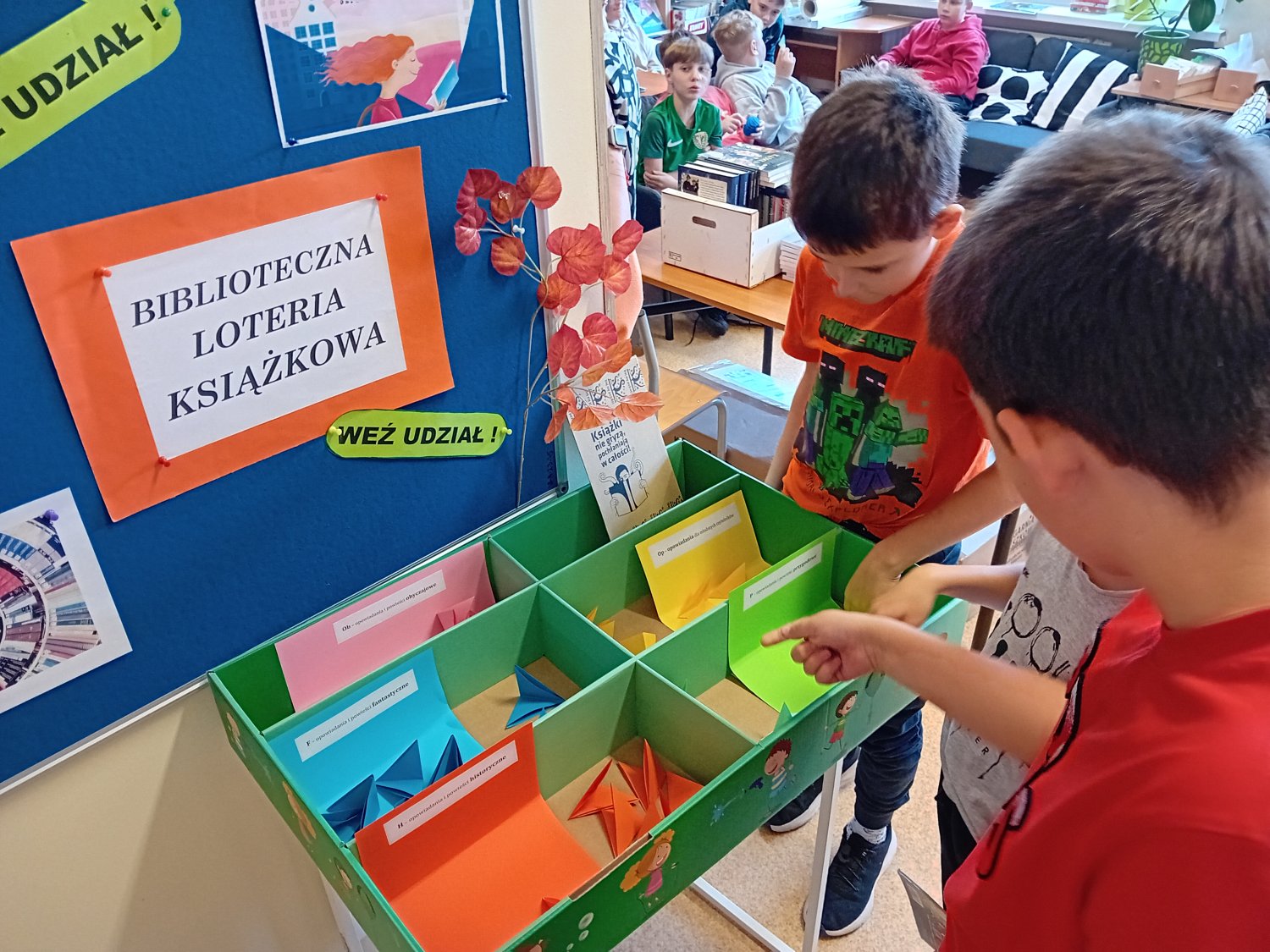 Celem LOTERII było inspirowanie czytelnictwa wśród dzieci i młodzieży oraz zachęcenie uczniów do korzystania z bogatego księgozbioru biblioteki szkolnej.