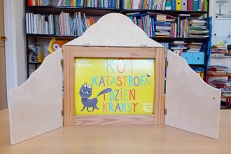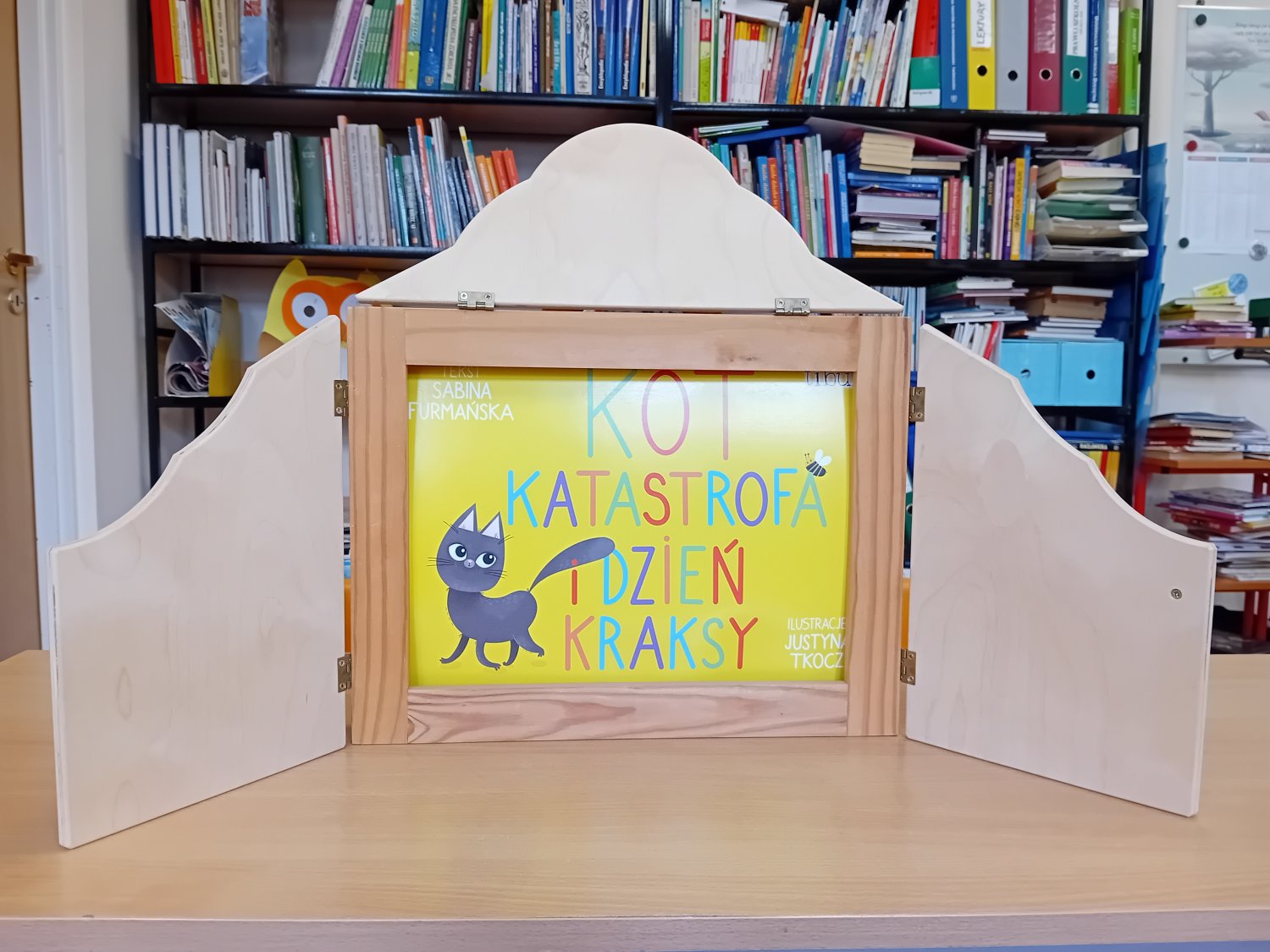 Karty narracyjne pt.„ Kot Katastrofa (...)" do kamishibai zakupiono ze środków Narodowego Programu Rozwoju Czytelnictwa.