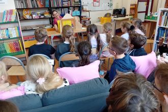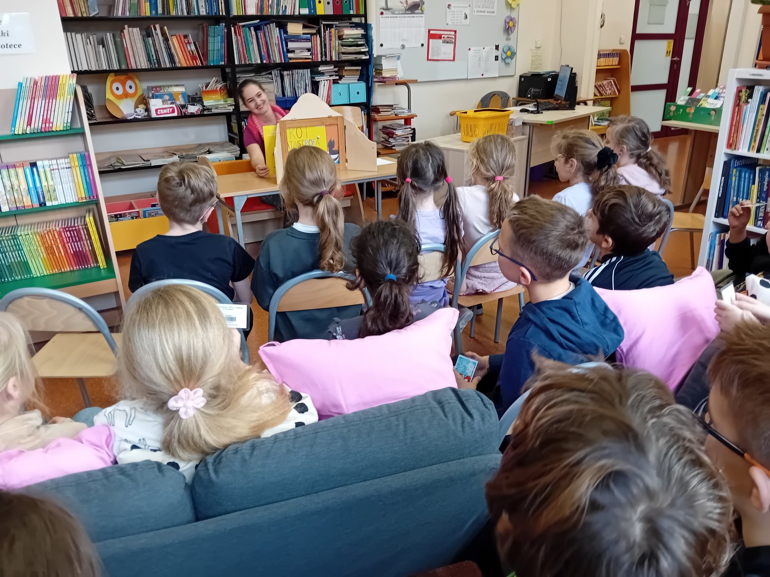 W dniach 14 i 18 listopada 2025 r. drugoklasiści uczestniczyli w wyjątkowym spektaklu kamishibai, przygotowanym w bibliotece przez nauczycieli bibliotekarzy.