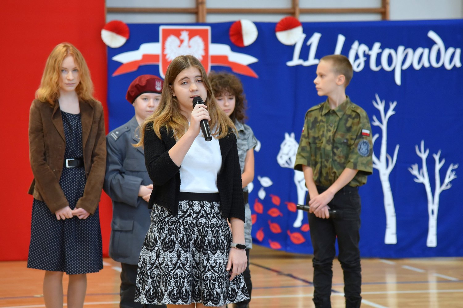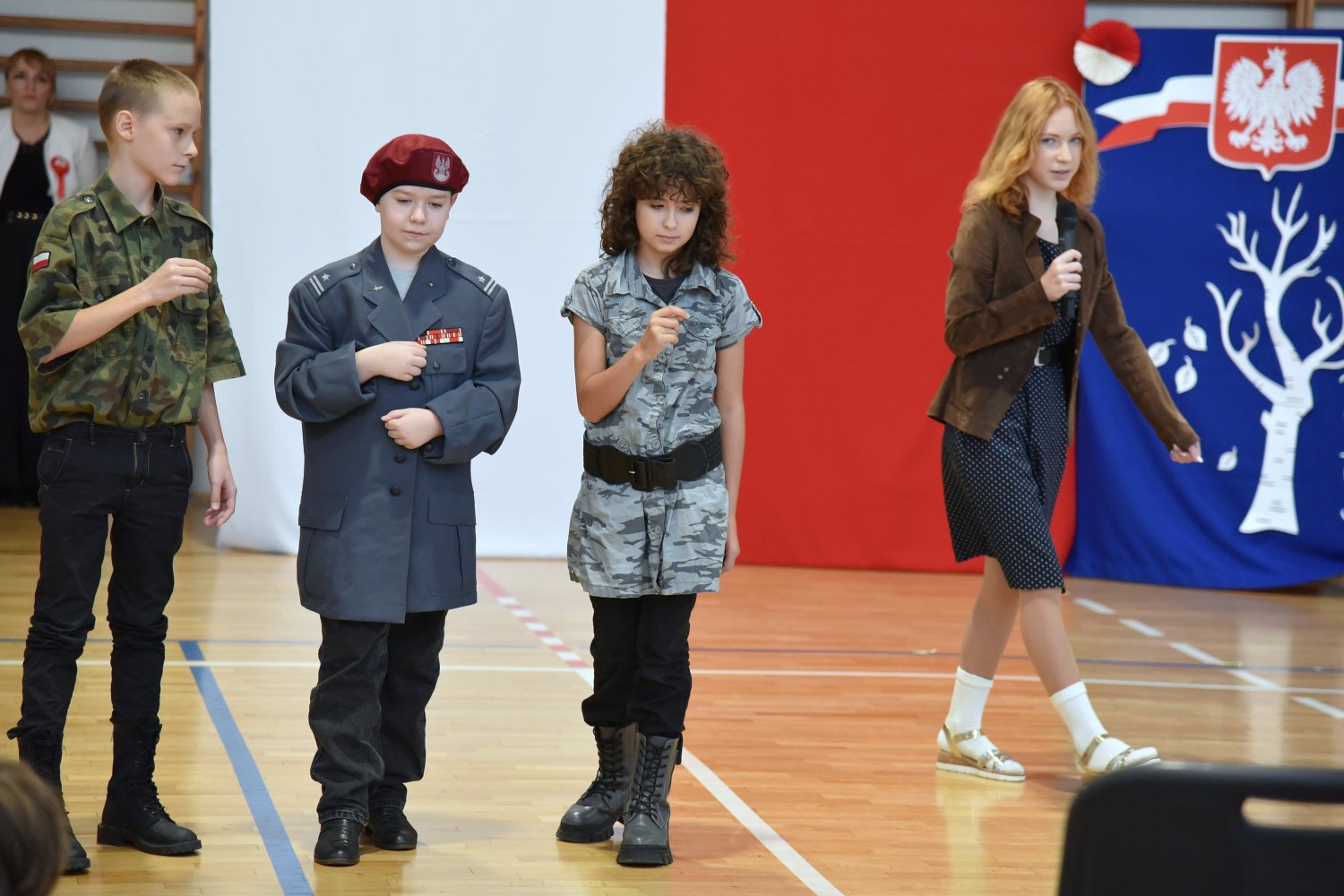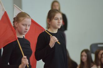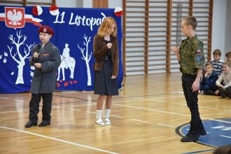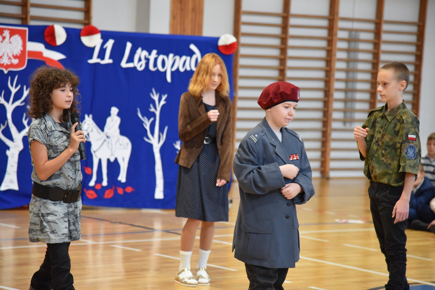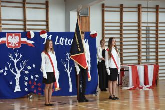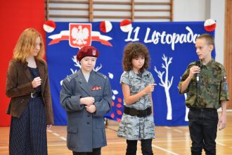Na scenie zaprezentowali się wspaniali młodzi aktorzy: Mikołaj z klasy 5d, Jakub z klasy 4d, Justyna z klasy 7b oraz Oleksandra z klasy 7d, którzy swoimi interpretacjami przypomnieli nam o odwadze, poświęceniu i sile ducha naszych przodków.