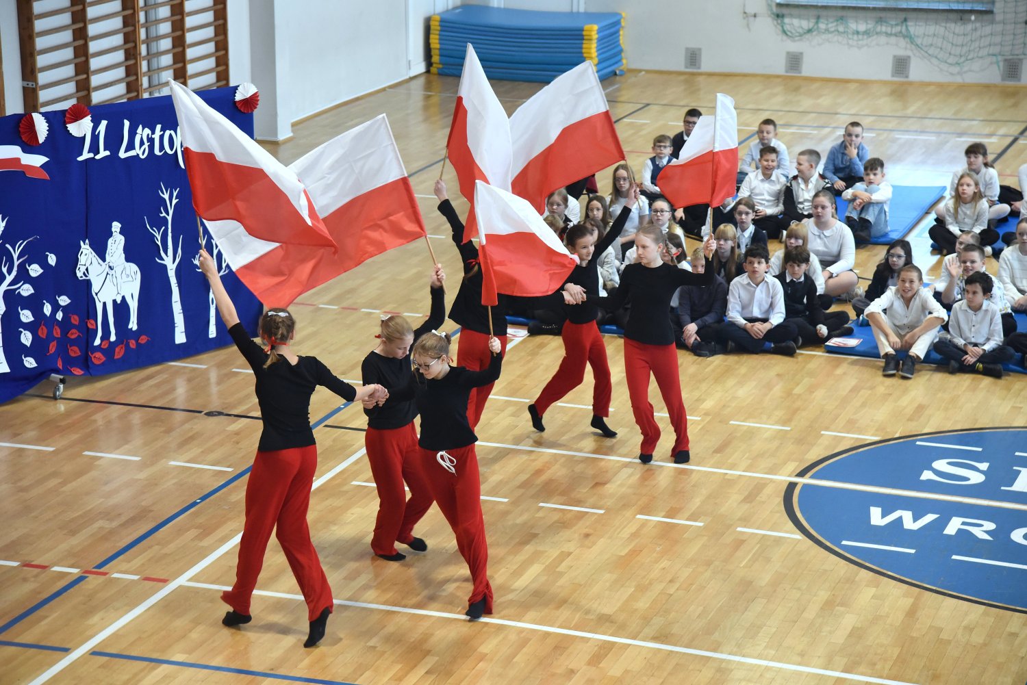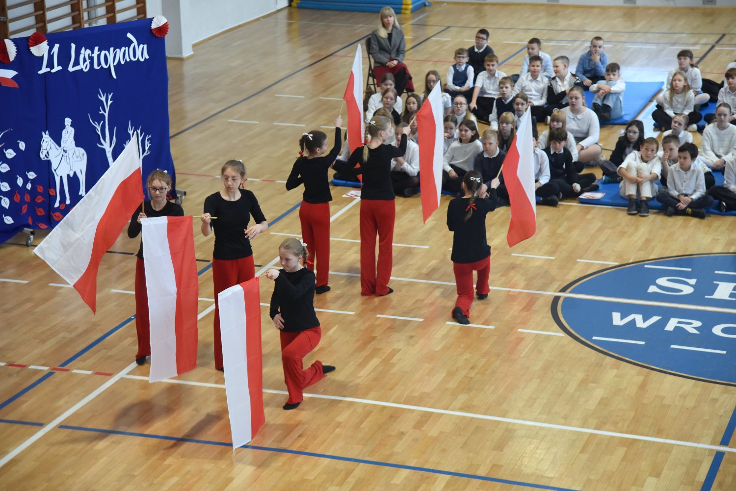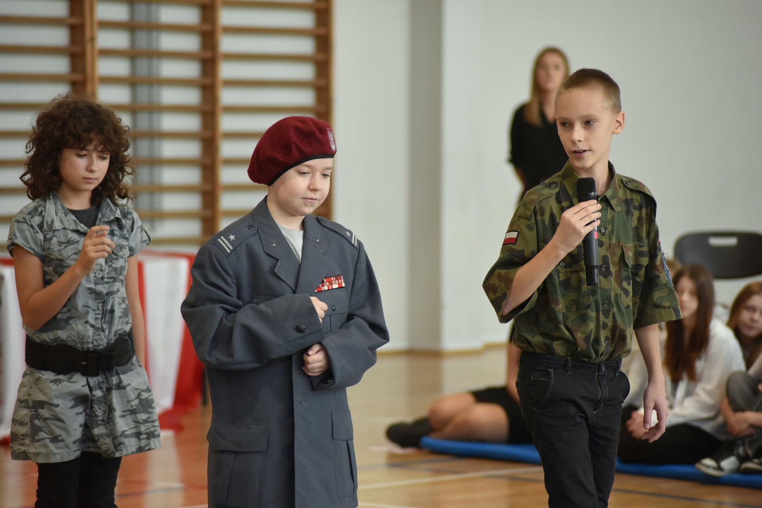 Na scenie zaprezentowali się wspaniali młodzi aktorzy: Mikołaj z klasy 5d, Jakub z klasy 4d, Justyna z klasy 7b oraz Oleksandra z klasy 7d, którzy swoimi interpretacjami przypomnieli nam o odwadze, poświęceniu i sile ducha naszych przodków.