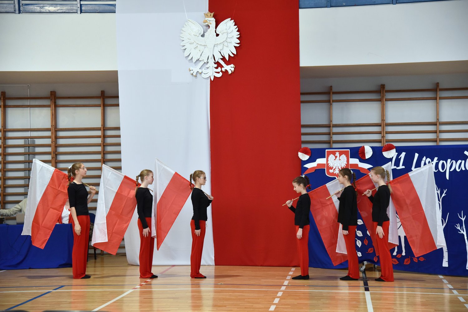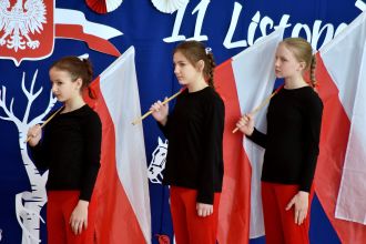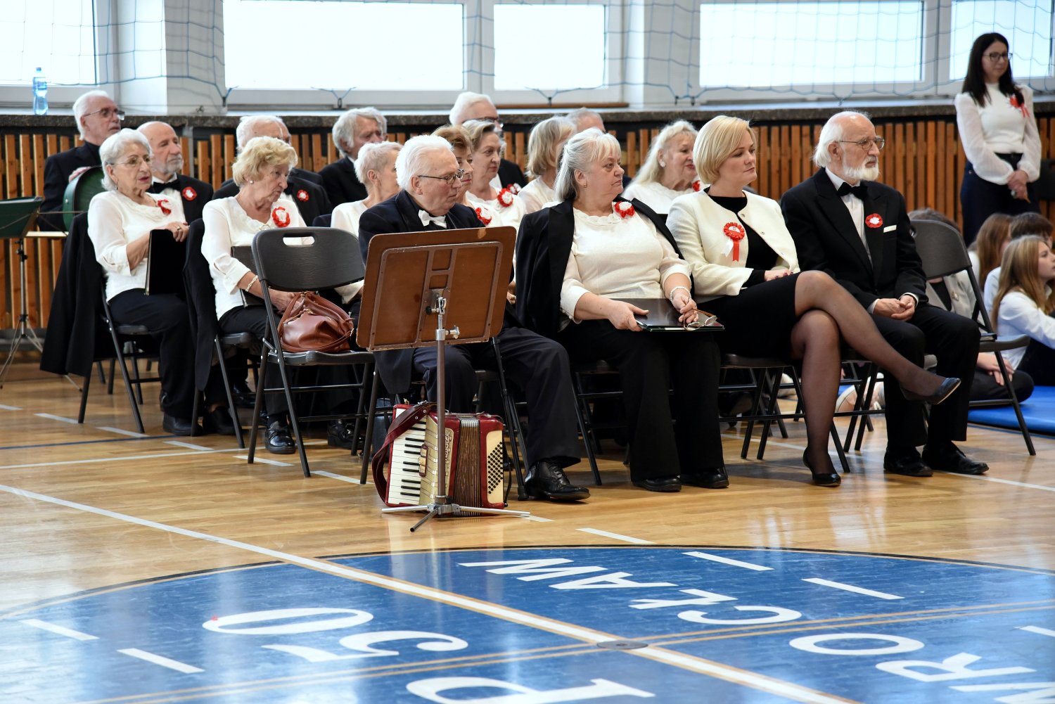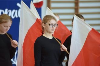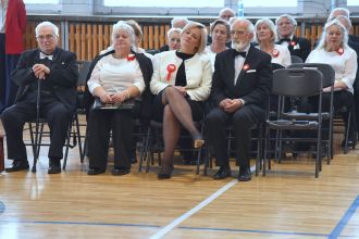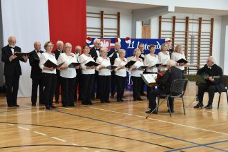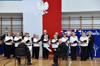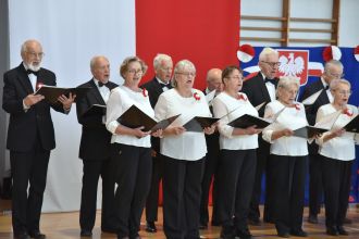Wspólne wykonania pieśni patriotycznych wypełniły salę potężnym, czystym brzmieniem.
