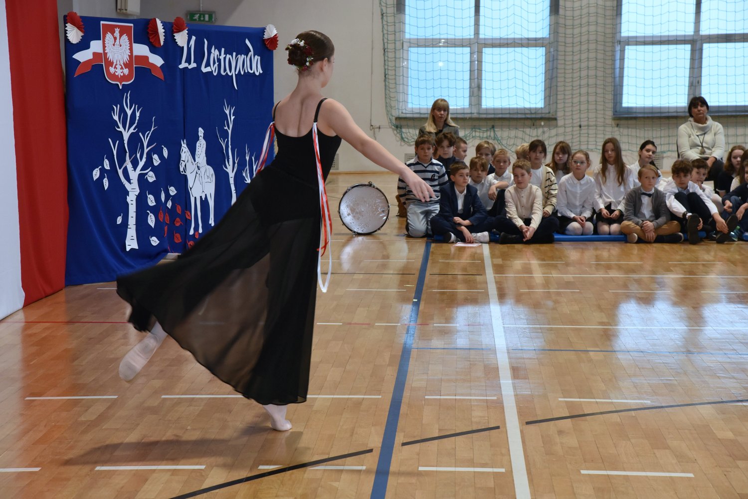 Uroczystość rozpoczęła się od subtelnego, pełnego wdzięku pokazu baletowego Zofii z klasy 8f, który wprowadził wszystkich w atmosferę skupienia i refleksji.