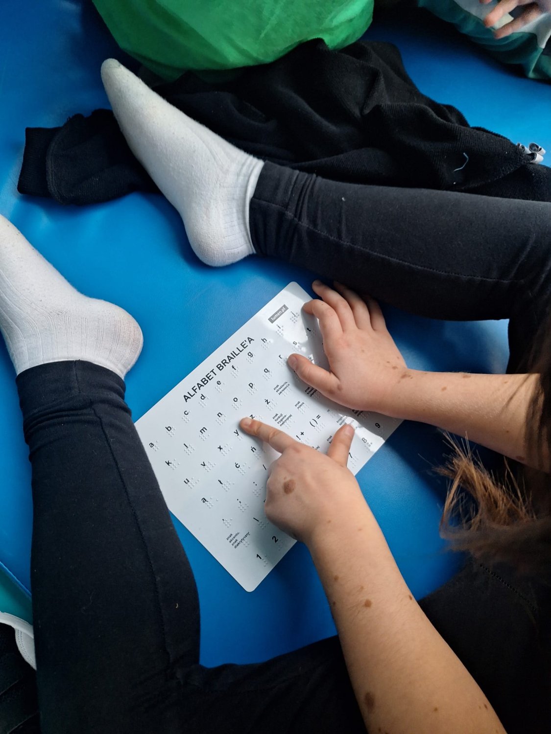 Podczas warsztatów uczniowie wcielali się w różne role i sami mogli poczuć, z jakimi wyzwaniami mierzą się osoby z ograniczeniami ruchowymi lub wzrokowymi. Dzieci jeździły na wózku, pokonywały tor przeszkód z użyciem białej laski oraz poznały alfabet Braille’a. Dużo emocji wywołała również zabawa w „magiczny worek”, gdzie uczestnicy z zasłoniętymi oczami odgadywali tajemnicze przedmioty polegając na zmysłach dotyku i słuchu.