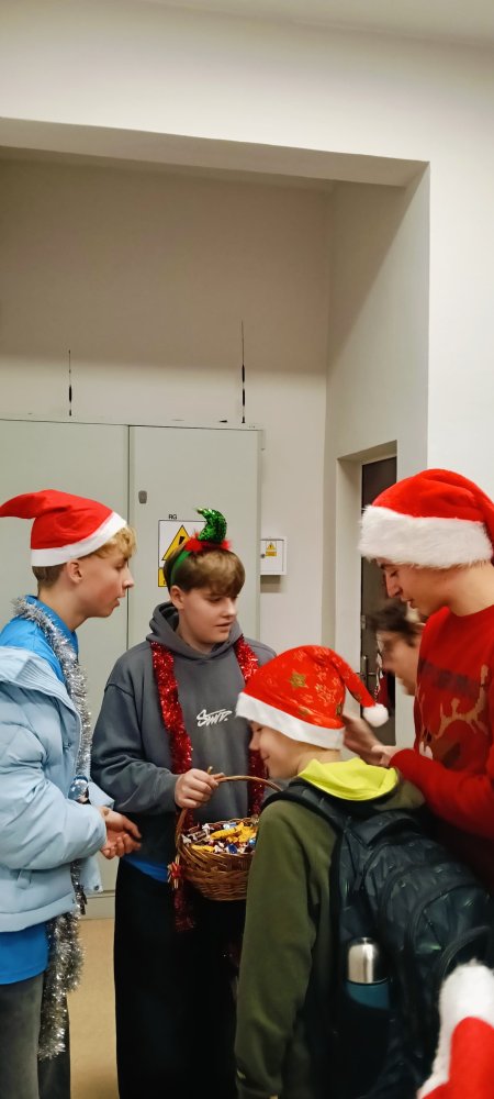 W tym roku Mikołajki były tak udane, że aż dzwonek na lekcję brzmiał jakby… bardziej słodko. Samorząd Uczniowski, wspólnie z Radą Rodziców, przygotował słodką niespodziankę i częstował wszystkich uczniów cukierkami – i to w takich ilościach, że nawet Święty Mikołaj musiałby poprosić o pomoc dodatkowego renifera!