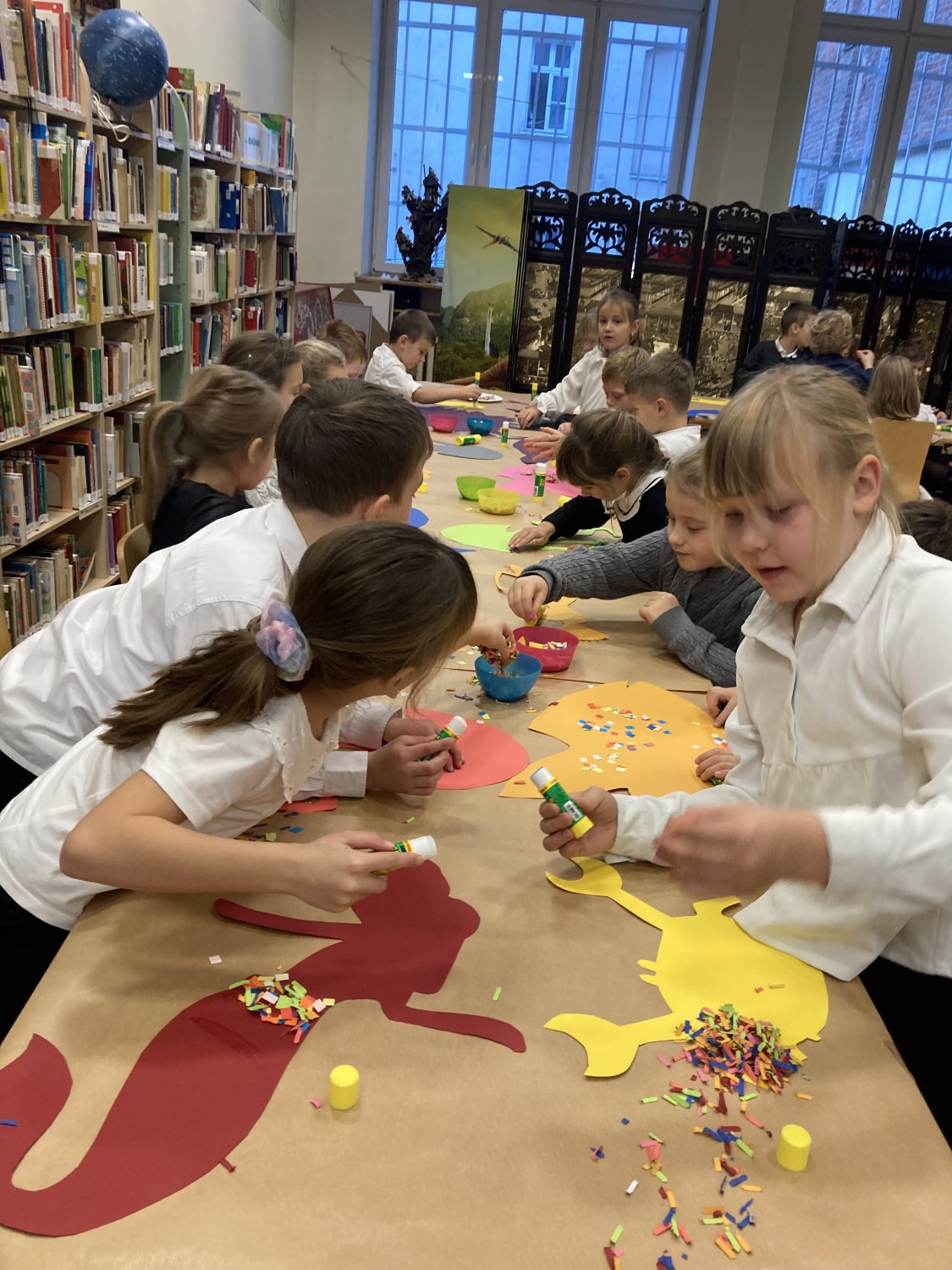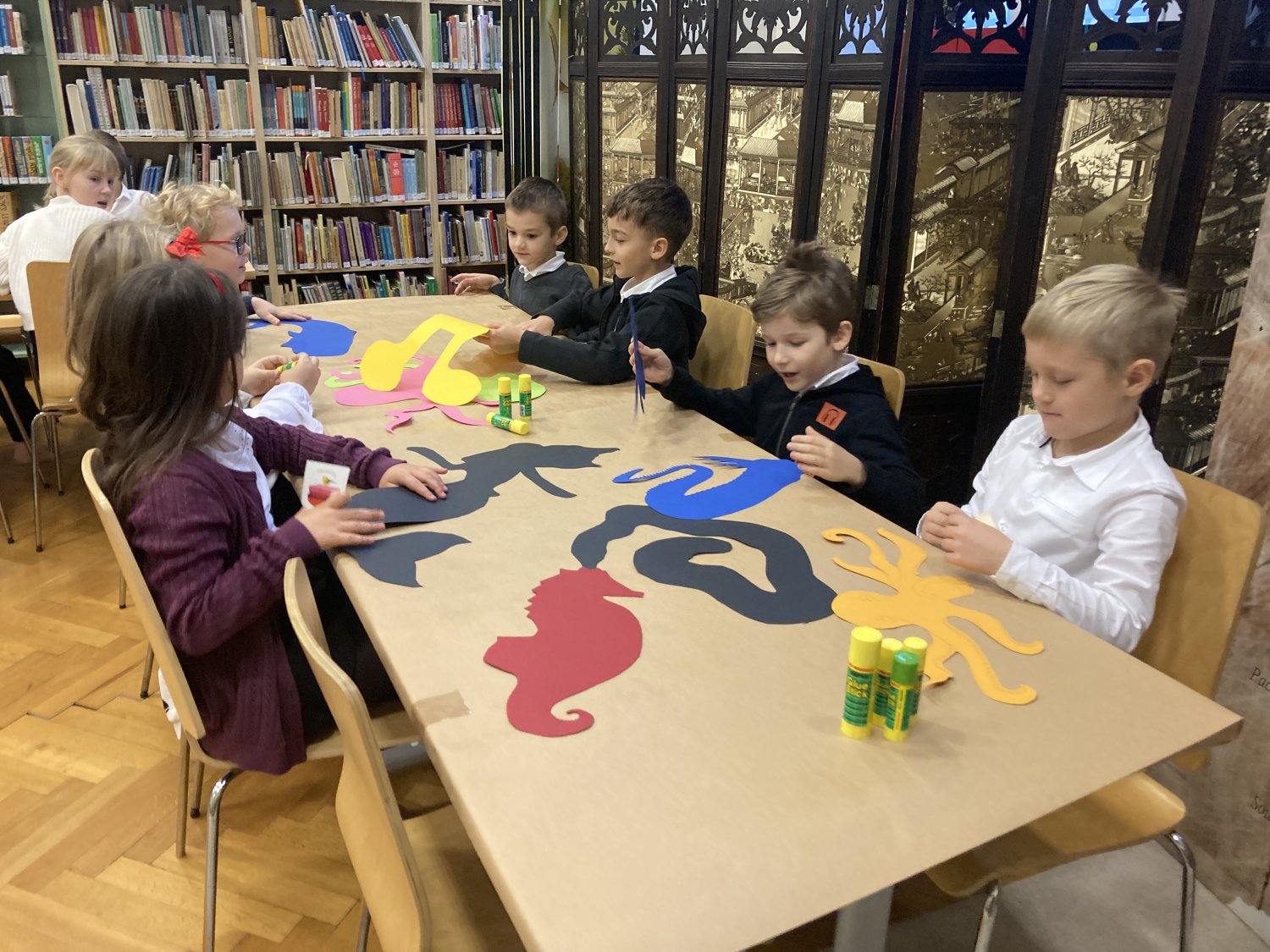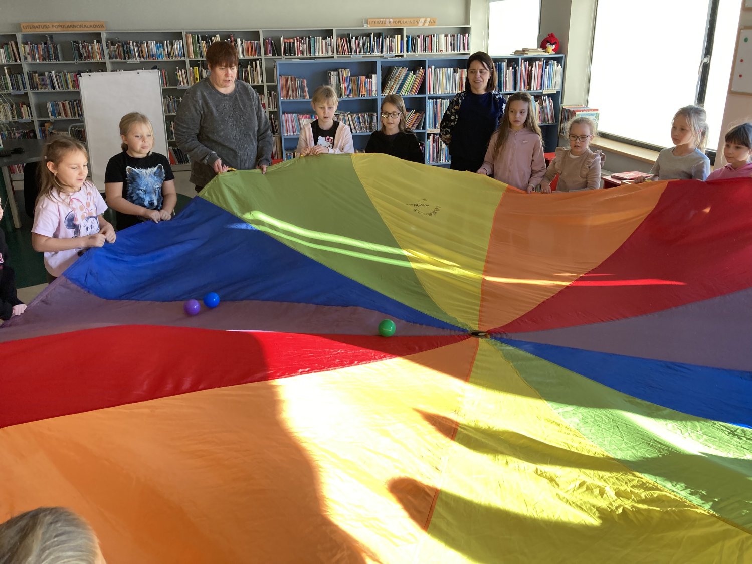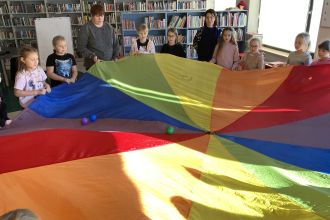Panie bibliotekarki przygotowały też dla naszych uczniów różne atrakcje: tworzyliśmy własne wodne stwory, bawiliśmy się chustą animacyjną. Było wesoło i ciekawie.