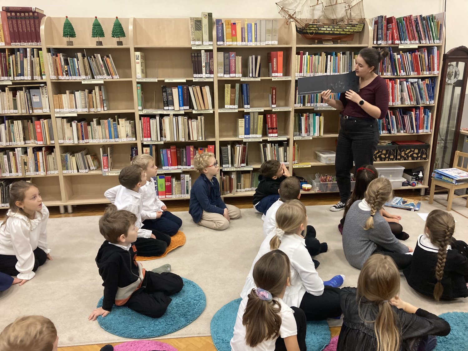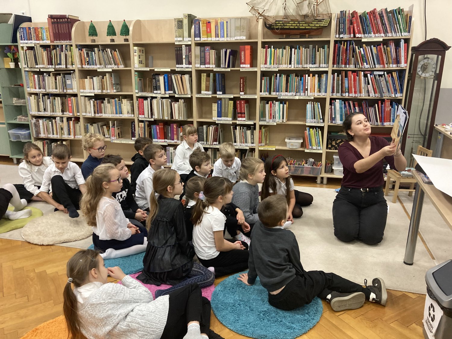 Podczas wizyt dzieci dowiedziały się, jak działa biblioteka, w jaki sposób wypożycza się książki, jak należy o nie dbać i dlaczego warto czytać codziennie, choćby przez kilka minut. Pierwszaki z zainteresowaniem słuchały opowieści bibliotekarzy, przeglądały kolorowe książki dla dzieci, a także poznawały różne działy biblioteczne – od półek z bajkami po kąciki młodego czytelnika.