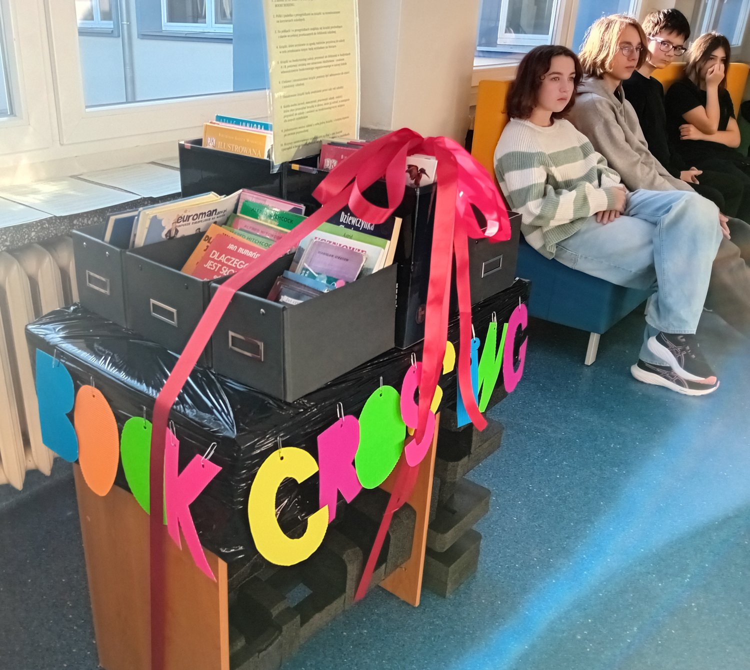 Przedstawiciele klas otrzymali wydrukowane Regulaminy funkcjonowania bookcrossingu i zadanie przekazania informacji wychowawcom i rówieśnikom ze swoich klas (regulamin dostępny jest na stronie Szkoły w zakładce BIBLIOTEKA).