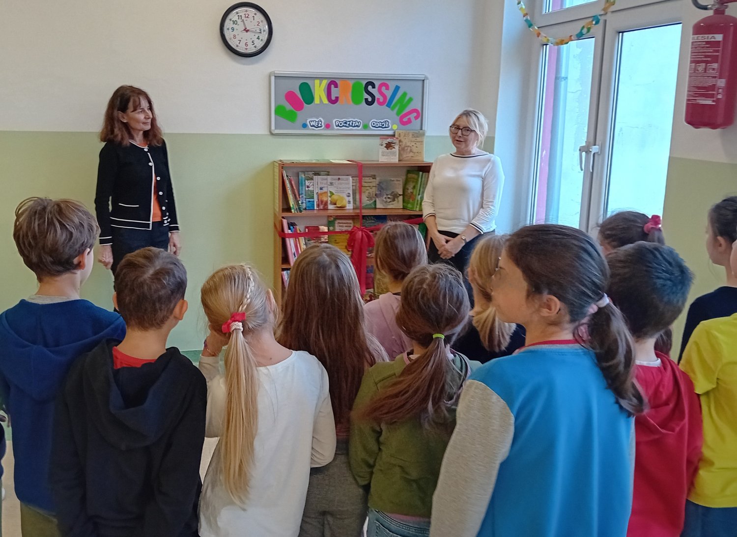 W wyjątkowych dwóch spotkaniach z udziałem Dyrekcji Szkoły uczestniczyli organizatorzy bookcrossingowych miejsc i tego wydarzenia – nauczyciele bibliotekarze oraz przewodniczący klas IV – VIII w budynku A (na korytarzu na II piętrze) oraz klas I - III w budynku B (na korytarzu przy świetlicy).