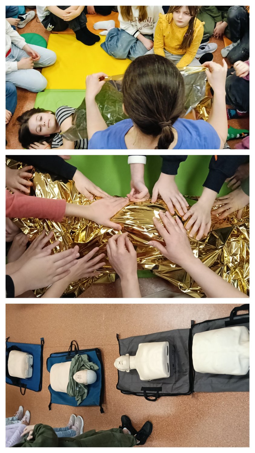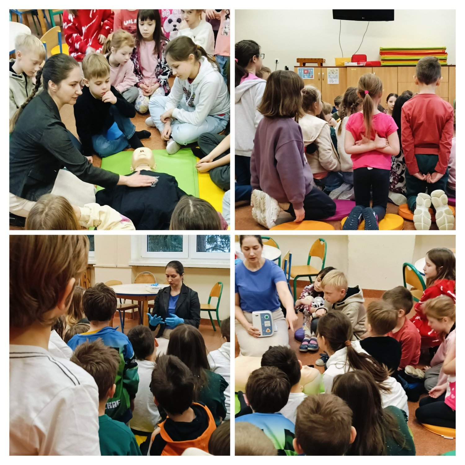 Świetliczaki wzięły udział w warsztatach udzielania pierwszej pomocy przedmedycznej. Każdy uczeń stał się młodym ratownikiem. Pokazywaliśmy czym jest korytarz życia, podglądaliśmy wymagającą uważności i refleksu pracę dyspozytora w Pogotowiu Ratunkowym, uczyliśmy się jak prawidłowo wezwać pomoc i słuchaliśmy bajki terapeutycznej Beaty Ostrowickiej pt.: „Telefony alarmowe 112”. Po wspólnych ćwiczeniach, które okazały się nie lada wyczynem zobaczyliśmy relację z akcji ratunkowej GOPRu. Ku przestrodze w związku ze zbliżającymi się feriami zimowymi. Dzieci chętnie wypowiadały się o nowoczesnych technologiach, wbudowanych w odzież i telefony, zapewniających bezpieczeństwo w górach, jak również o konieczności zachowania zdrowego rozsądku. Każdy krok ma znaczenie.