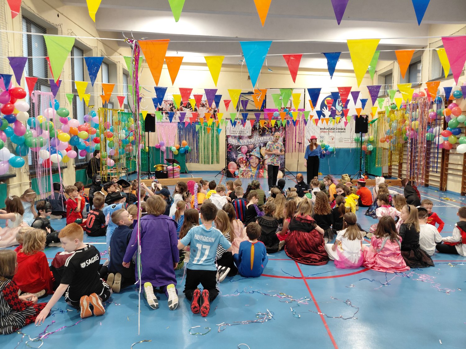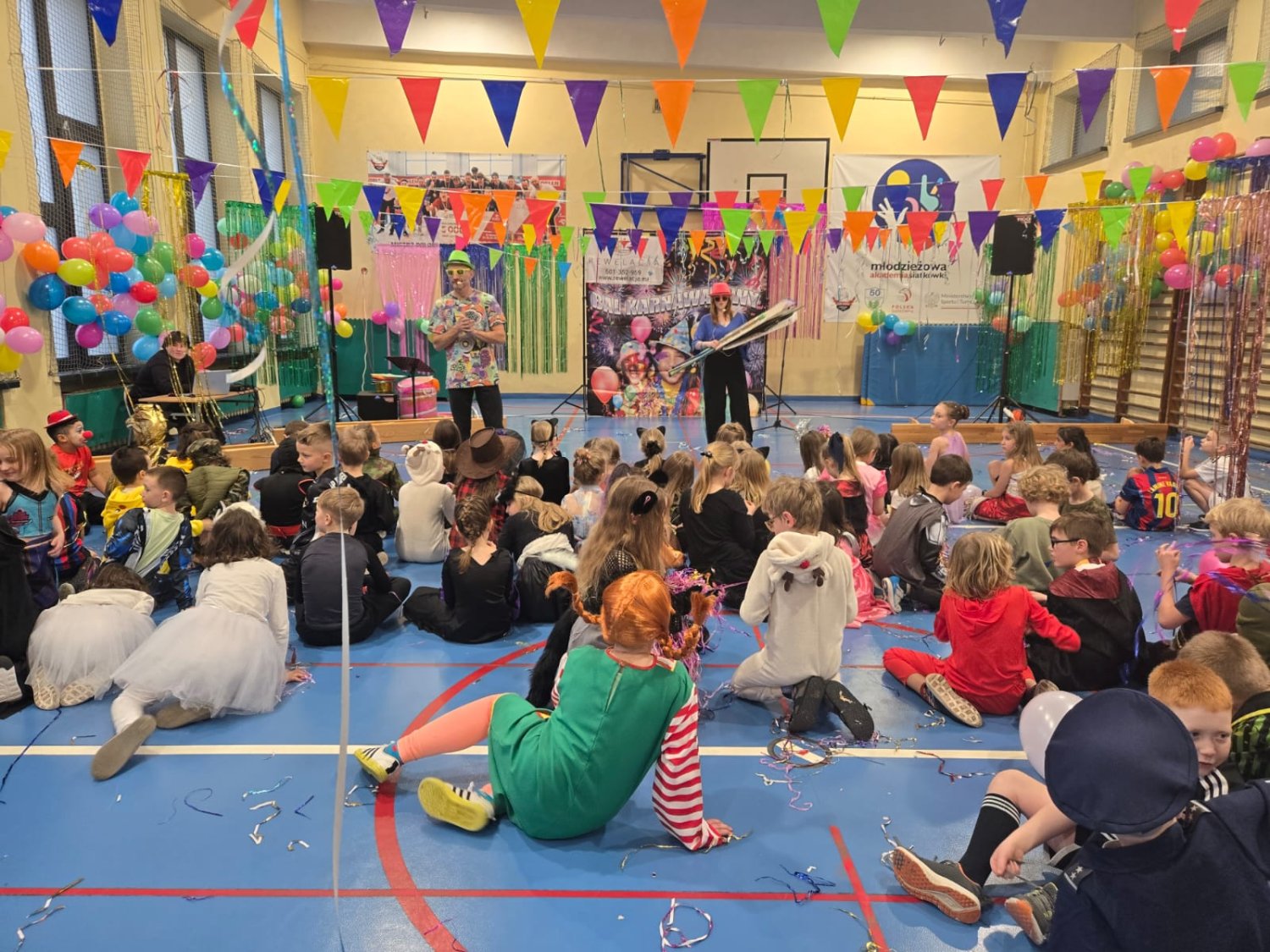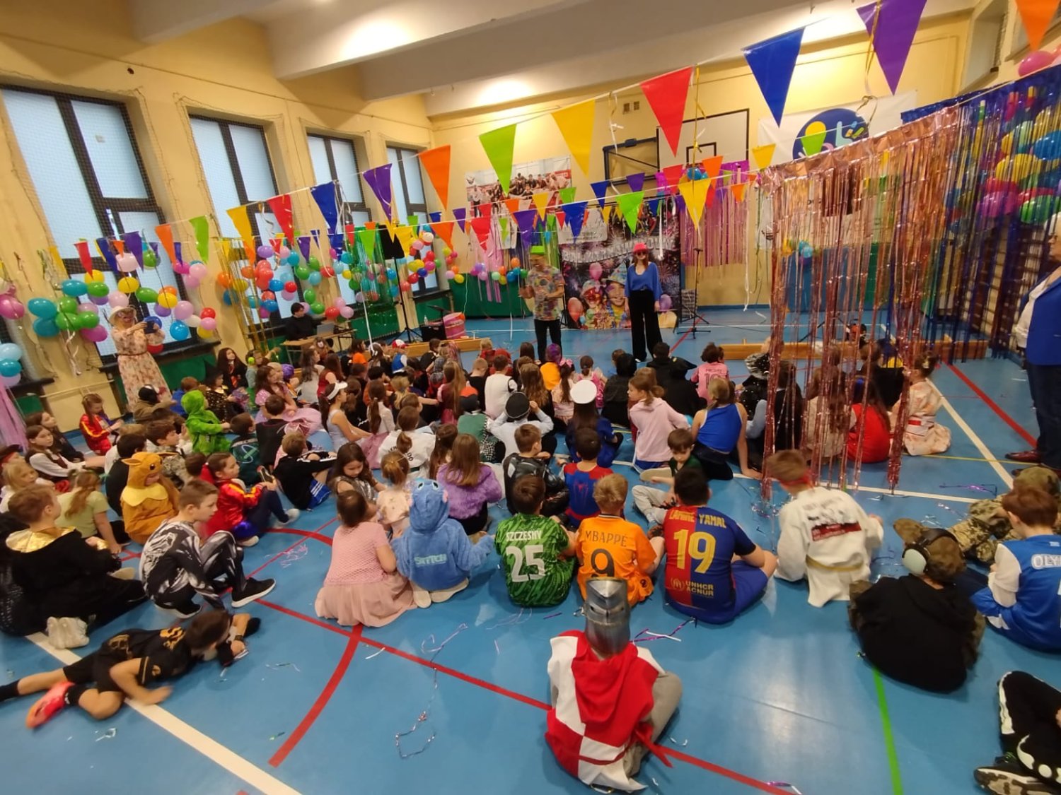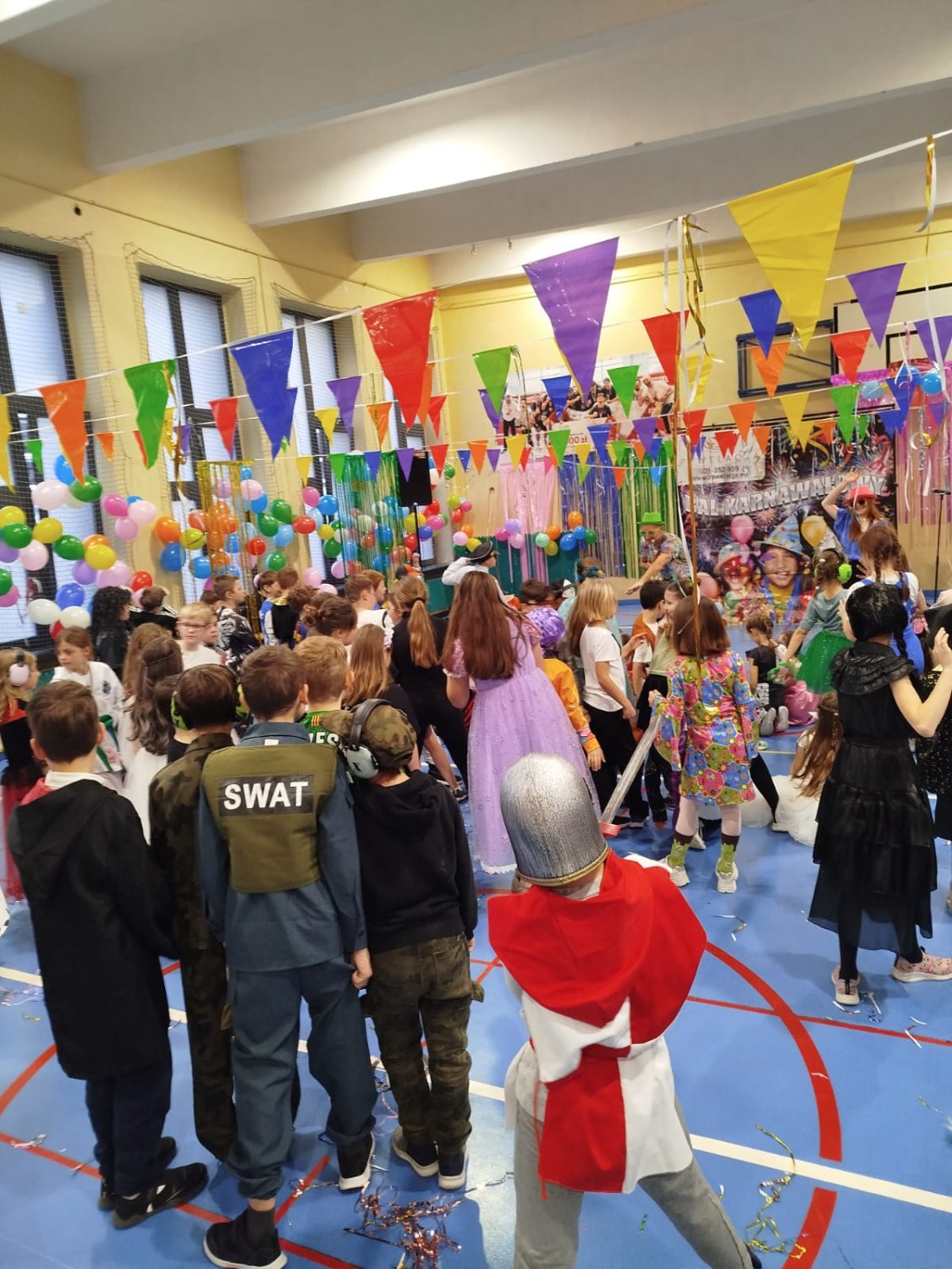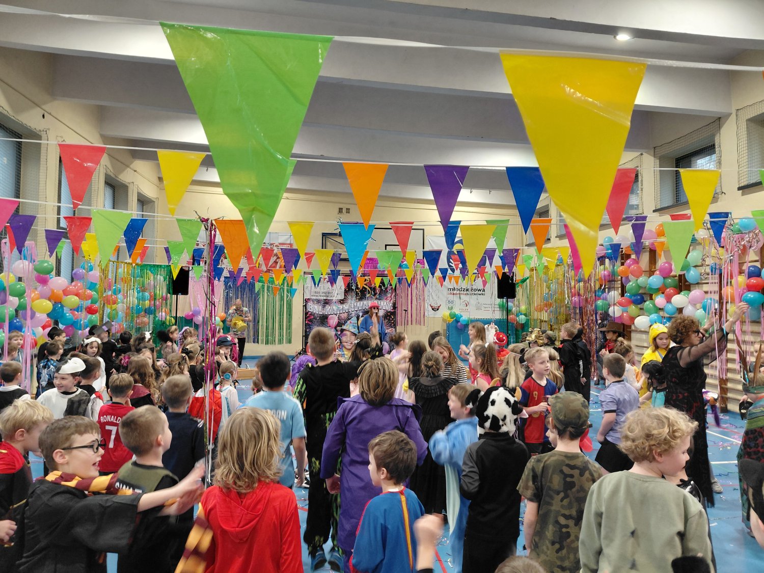 Dzisiaj w naszej szkole odbył się Bal Karnawałowy dla uczniów klas I–III. Było mnóstwo radości, tańca i wspaniałej zabawy, a dzieci zachwyciły pomysłowymi i kolorowymi przebraniami.