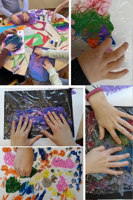Nasi uczniowie,przebywając w świetlicy, biorą udział w projekcie Kreatywne Prace Plastyczne i tworzą naprawdę kreatywne dzieła. Nie tylko pędzle służą nam do malowania, ale pomięty papier lub własne dłonie. Jest dużo zabawy i sensorycznych doświadczeń.