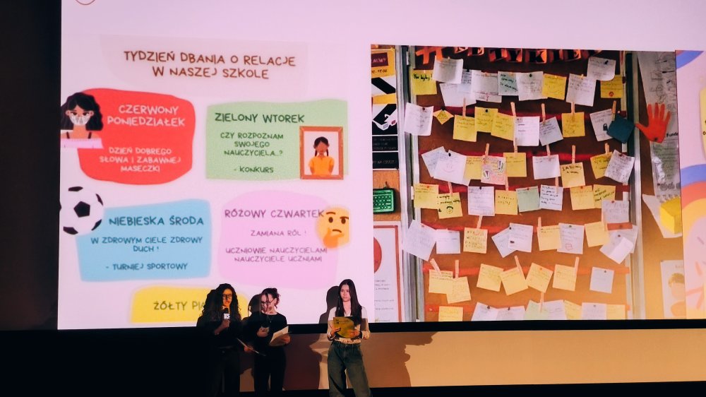 Konferencja odbyła się w gościnnych progach Dolnośląskiego Centrum Filmowego, a jej gospodarzem było Wrocławskie Centrum Rozwoju Społecznego. Z wystąpień gości dowiedzieliśmy się, jakie działania można podejmować w obszarze zwiększania cyberbezpieczeństwa dzieci i młodzieży. Uczennice ze Szkoły Podstawowej nr 24 na Złotnikach opowiedzuały o tym, jak wspierają lokalną społeczność w podnoszeniu kompetencji cyfrowych. Zaprezentowały efekty własnych inicjatyw, które podejmują w szkole, m.in. z okazji Tygodnia Bezpiecznego Internetu. Na kinowym ekranie zobaczyliśmy też rolki nagrodzone w tegorocznej edycji konkursu CyberCzat, który zorganizowała Komisja Europejska, a na korytarzach DCF-u podziwialiśmy zwycięskie prace plastyczne w konkursie #CYBERCZAT.