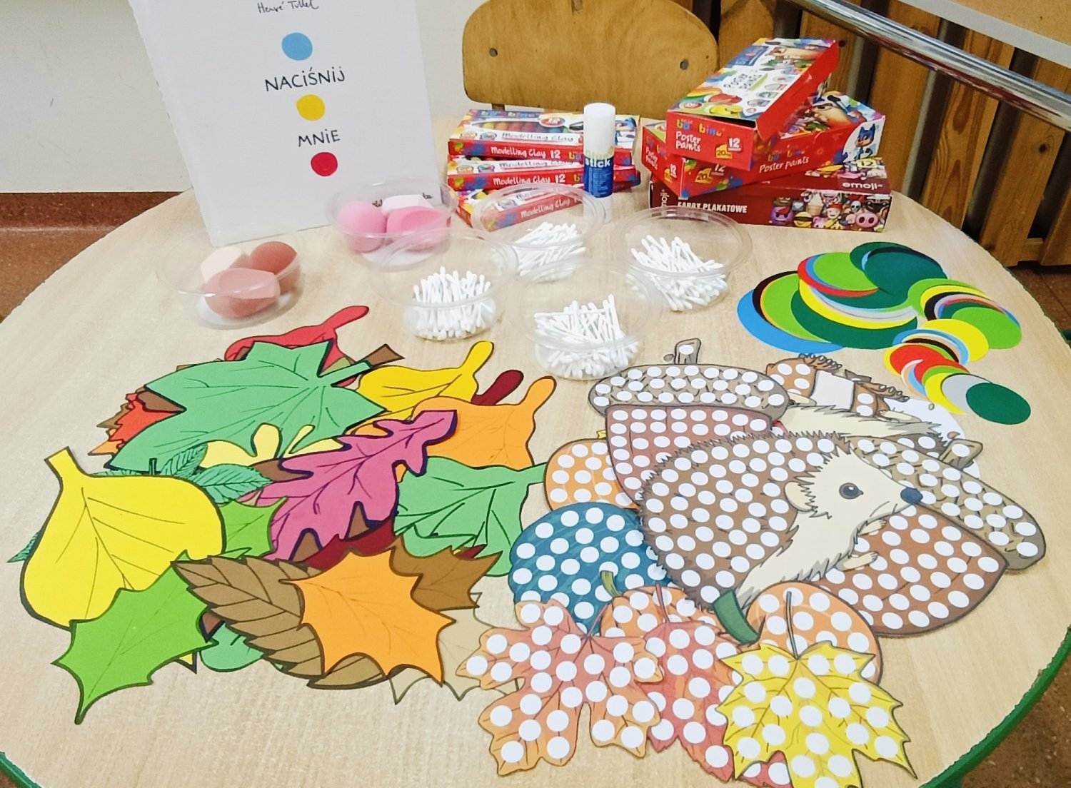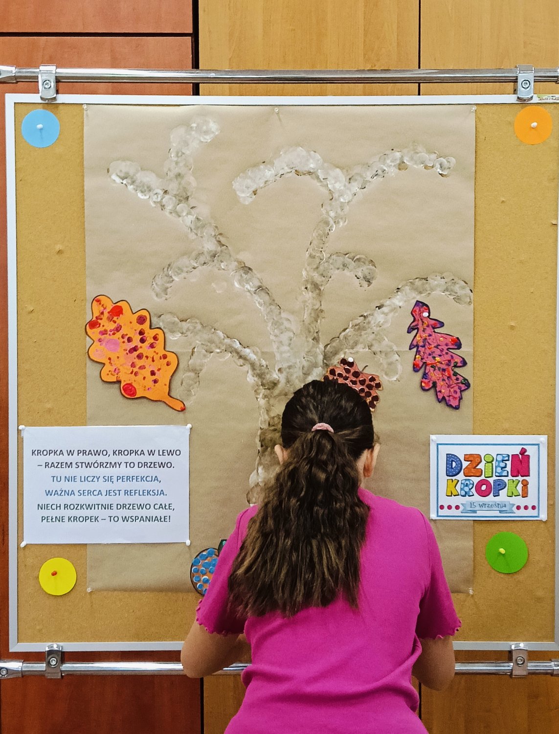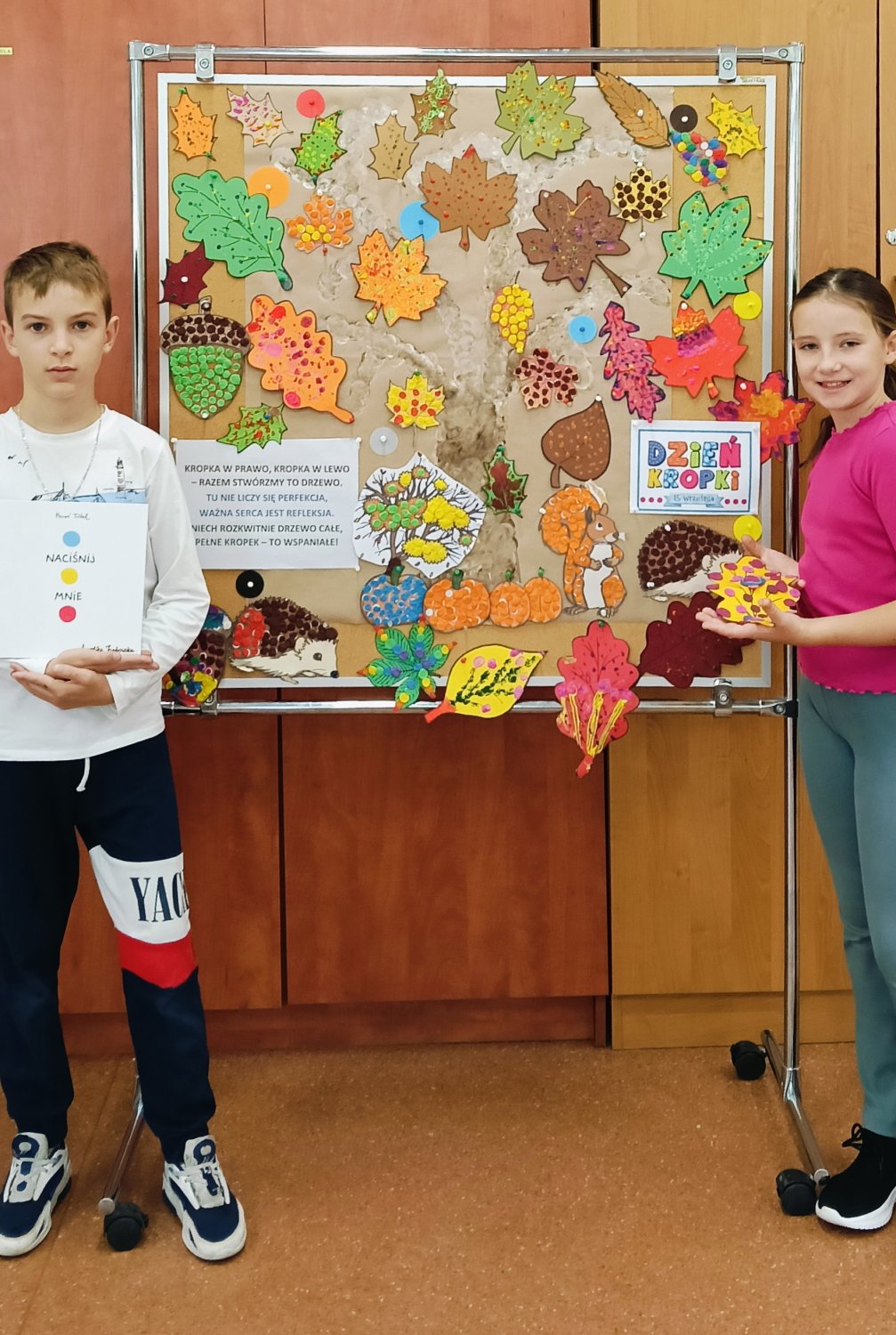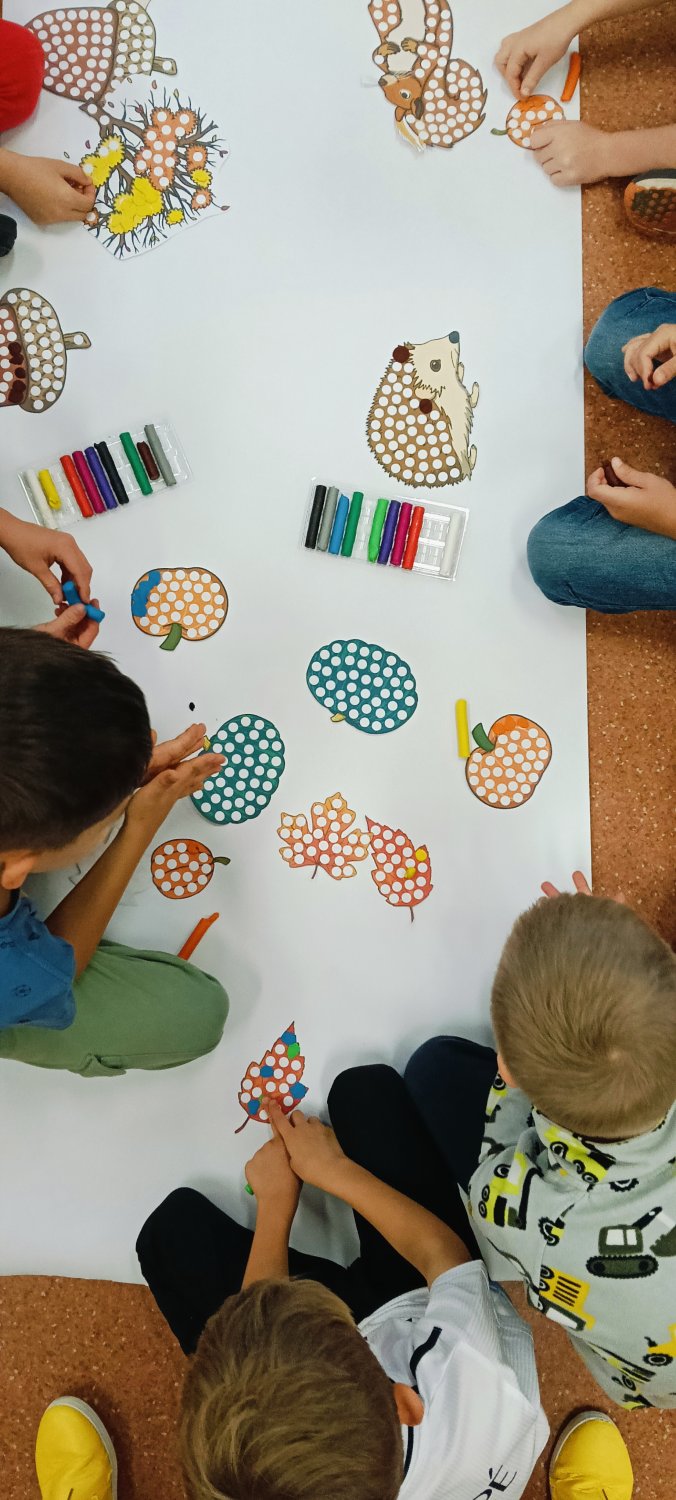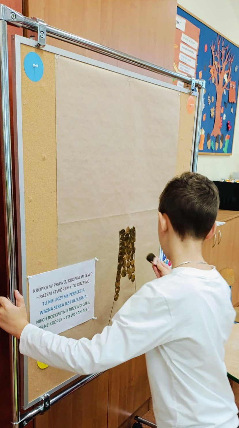Z okazji Dnia Kropki – 15 września odbyły się warsztaty czytelniczo-plastyczne. To właśnie Ona stała się początkiem kompozycji do stworzenia KROPKOWEGO DRZEWA i krótkiego wiersza „KROPKA W PRAWO, KROPKA W LEWO – RAZEM STWÓRZMY TO DRZEWO. TU NIE LICZY SIĘ PERFEKCJA, WAŻNA SERCA JEST REFLEKSJA. NIECH ROZKWITNIE DRZEWO CAŁE, PEŁNE KROPEK – TO WSPANIAŁE!”.