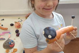 Na naszych zajęciach kreatywnych, powstały niezwykłe stworki, ze świeżych warzyw, owoców oraz wykałaczek.