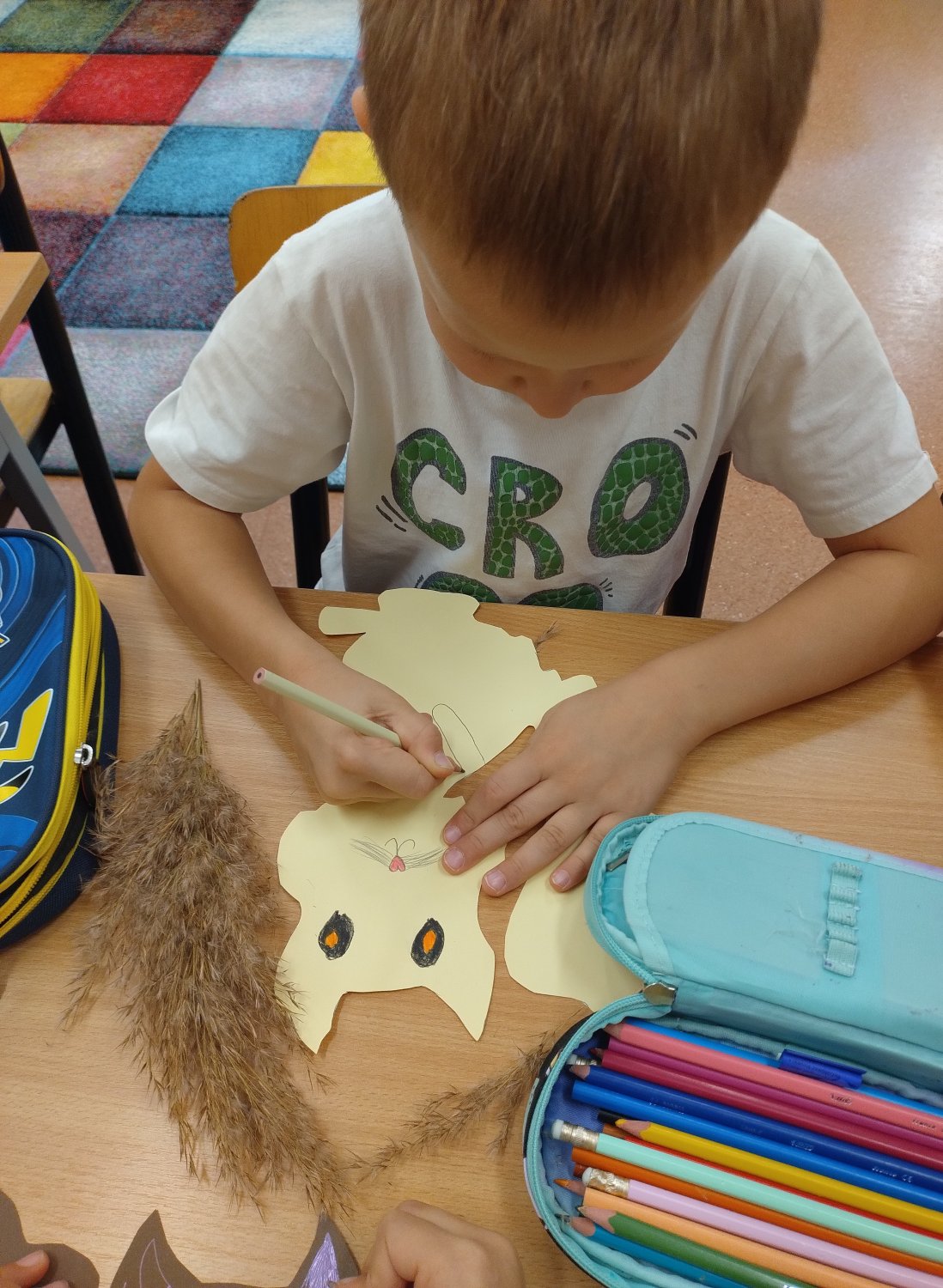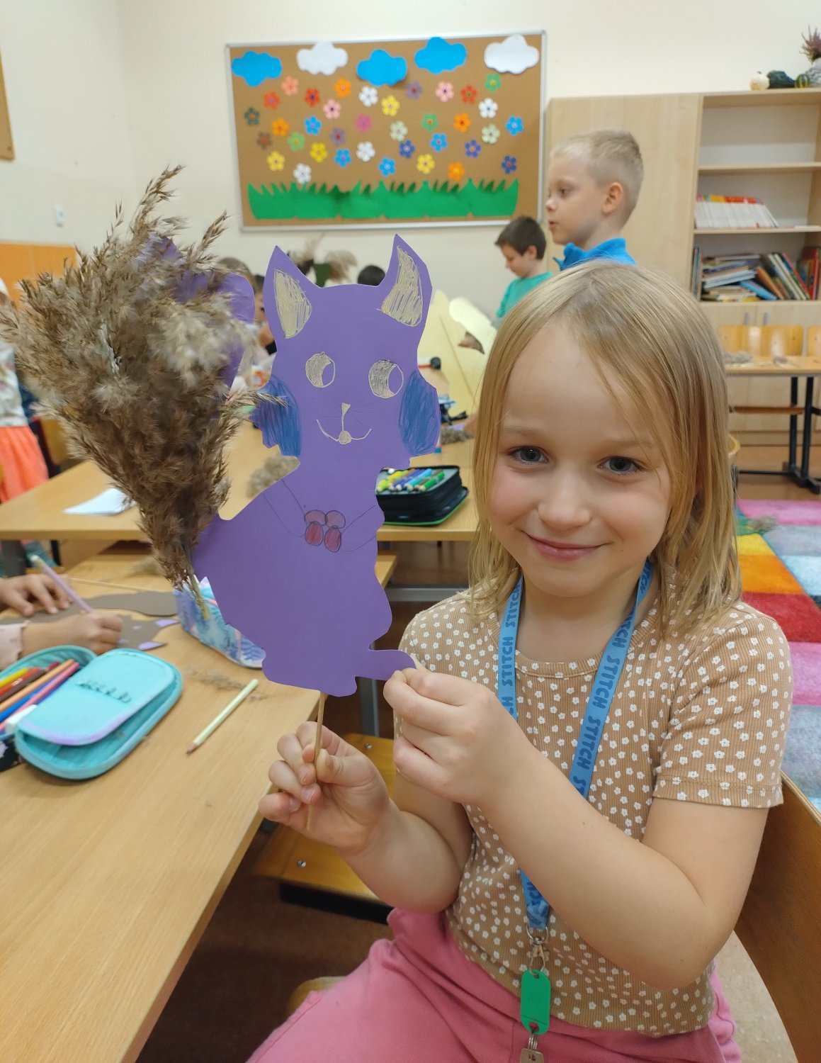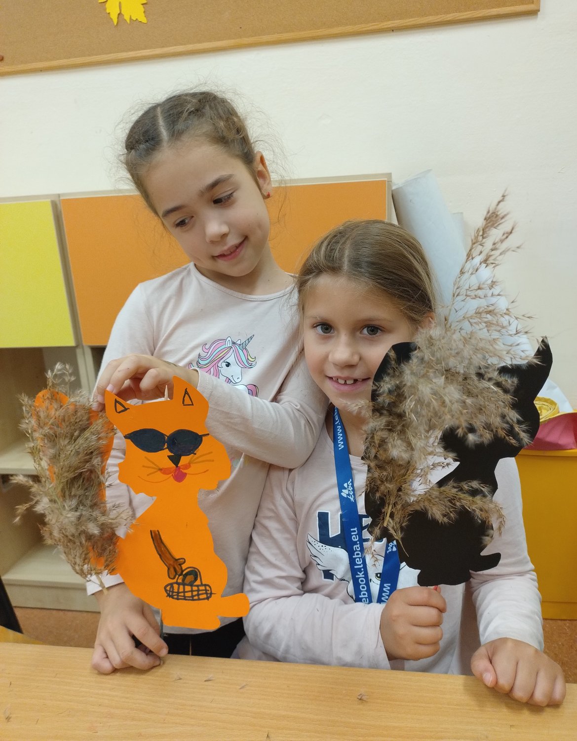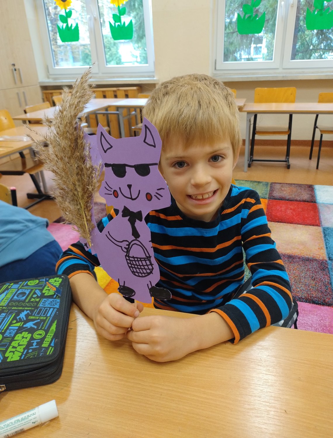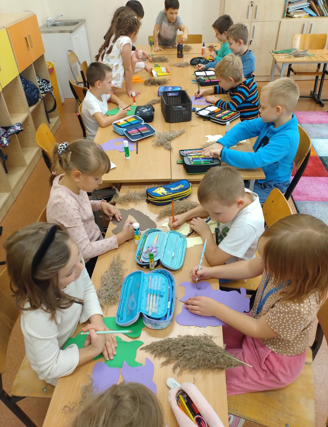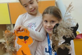 Następnie, z kolorowego papieru, patyczków i jesiennych traw stworzyli wiewiórki - kukiełki, które posłużyły również do krótkich zabaw teatralnych.
