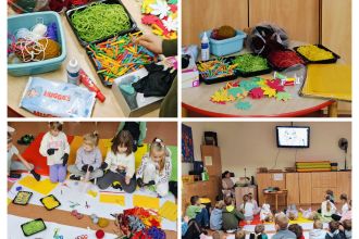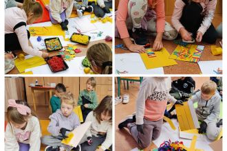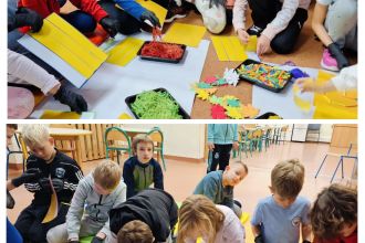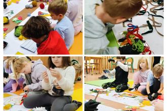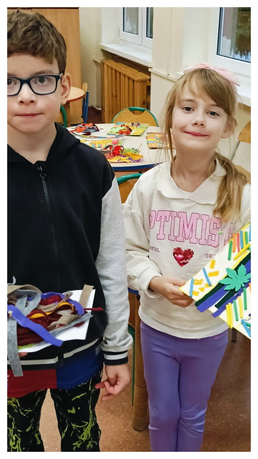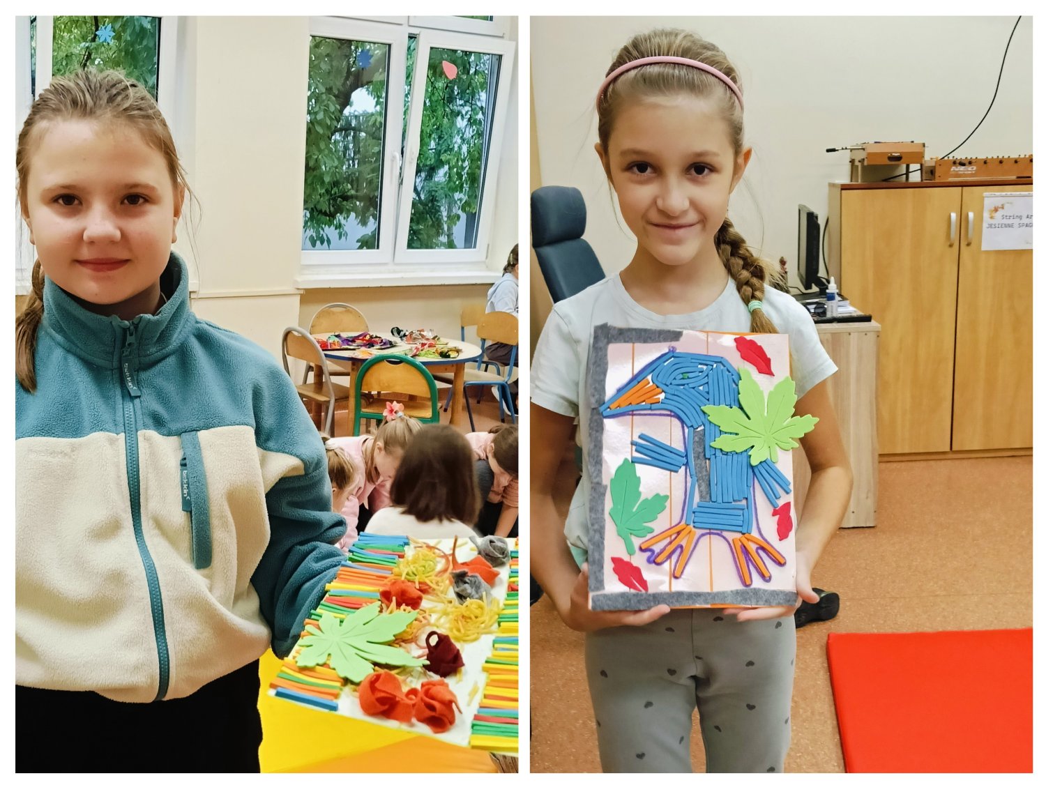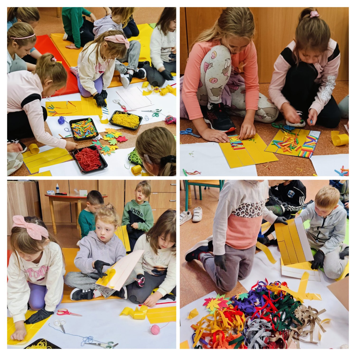 Świetlicę opanowały kolorowe makarony spaghetti, filcowe wstążki, wełny, nicie, sznurki i muliny. Świetliczaki samodzielnie projektowały obrazy z JESIENNYM SPAGHETTI. Na zajęciach uczniowie współpracowali, dzielili się wiedzą i artykułami dekoracyjnymi oraz doskonalili swoją precyzję i cierpliwość.