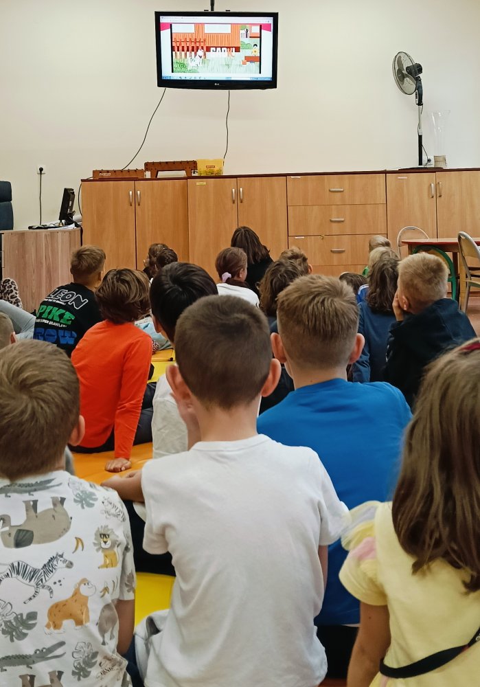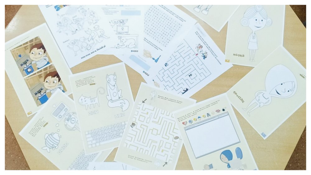 Na uczniów w świetlicy szkolnej czekają kolorowe karty pracy i możliwość uczestnictwa w interaktywnych lekcjach online ze specjalistami z Fundacji Dajemy Dzieciom Siłę.