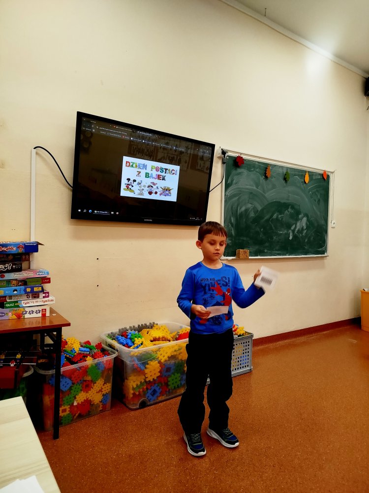 Uczniowie rozpoznawali kto, ukrywa się z bajkowych postaci w quizie obrazkowymi. Świetnie dali sobie, radę, choć niektóre zagadki były podchwytliwe.
