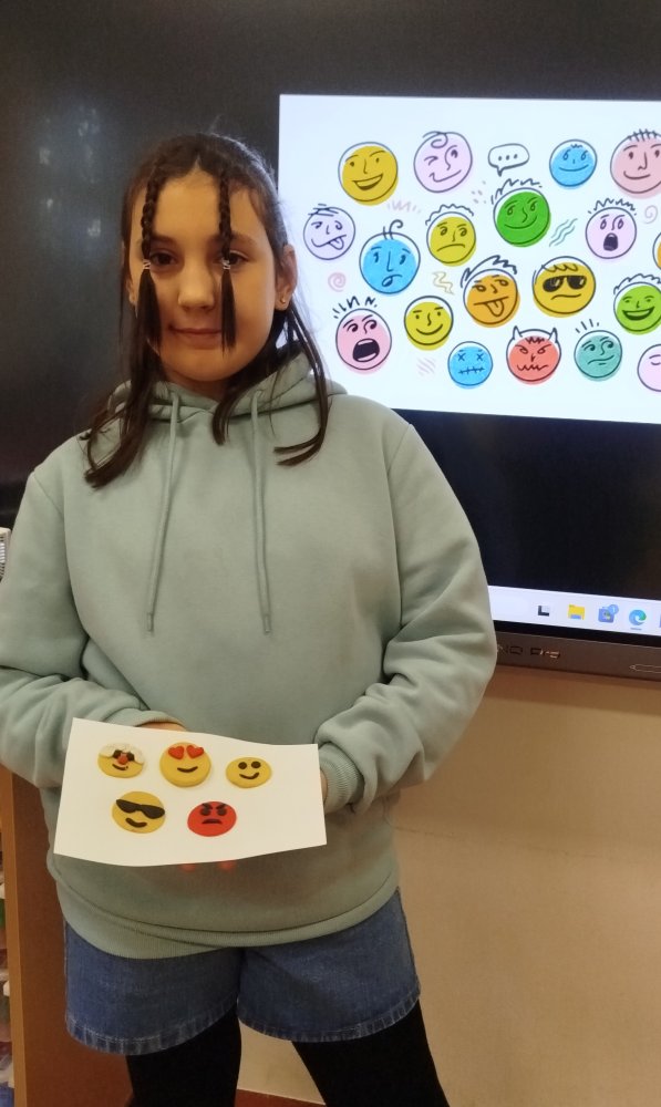 Jak podsumowanie zajęć uczniowie wykonali dowolne emotikony, czyli znaki graficzne przedstawiającym emocje.