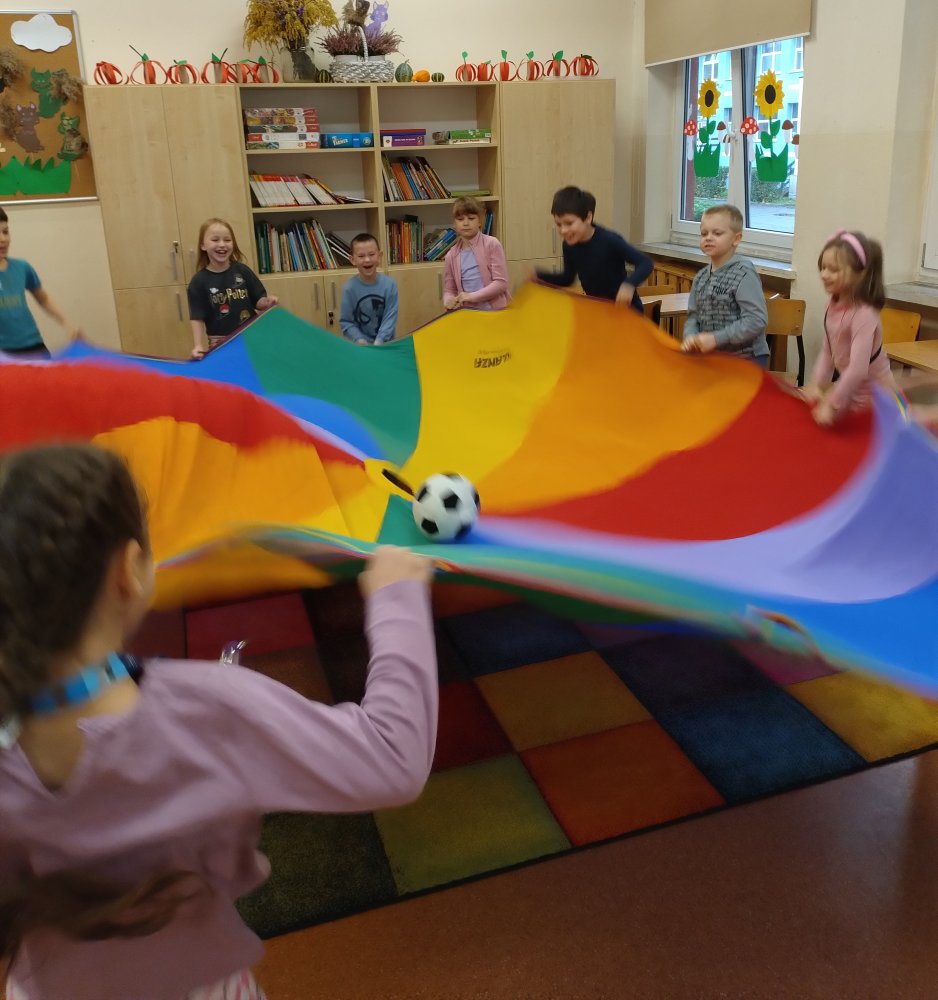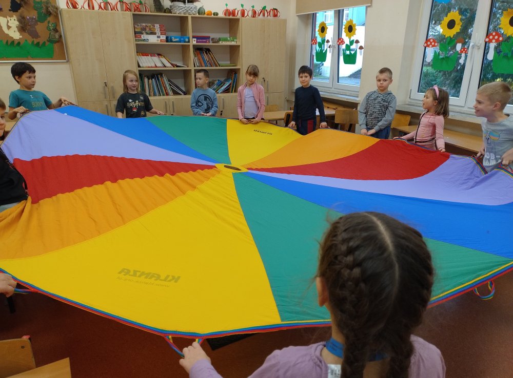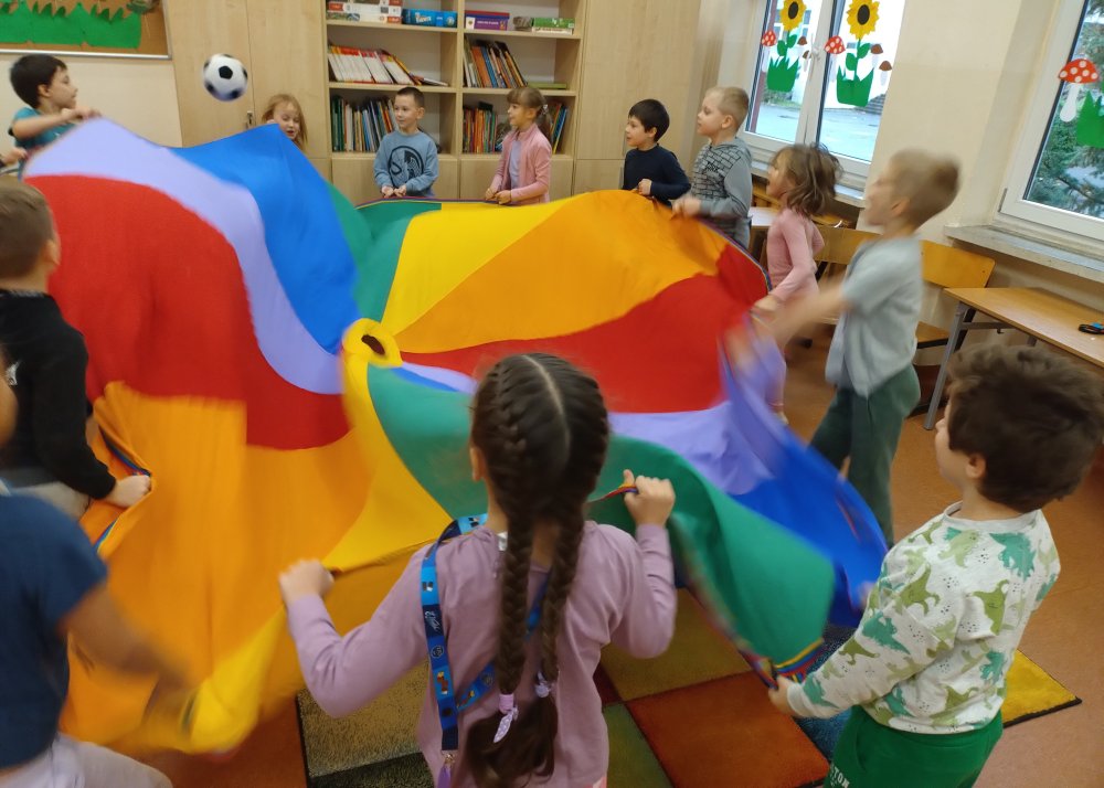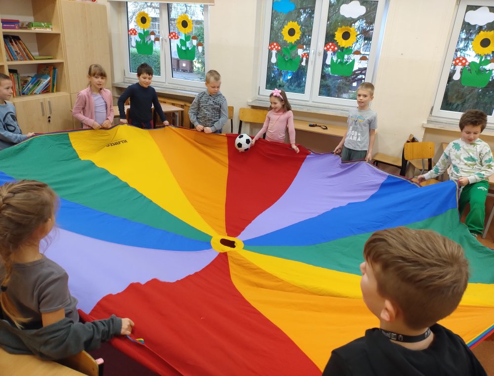 Świetliczaki brały udział w takich zabawach jak "Fale na morzu", "Balon", "Bilard", "Parasol" czy "Kolory".