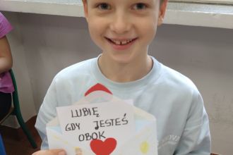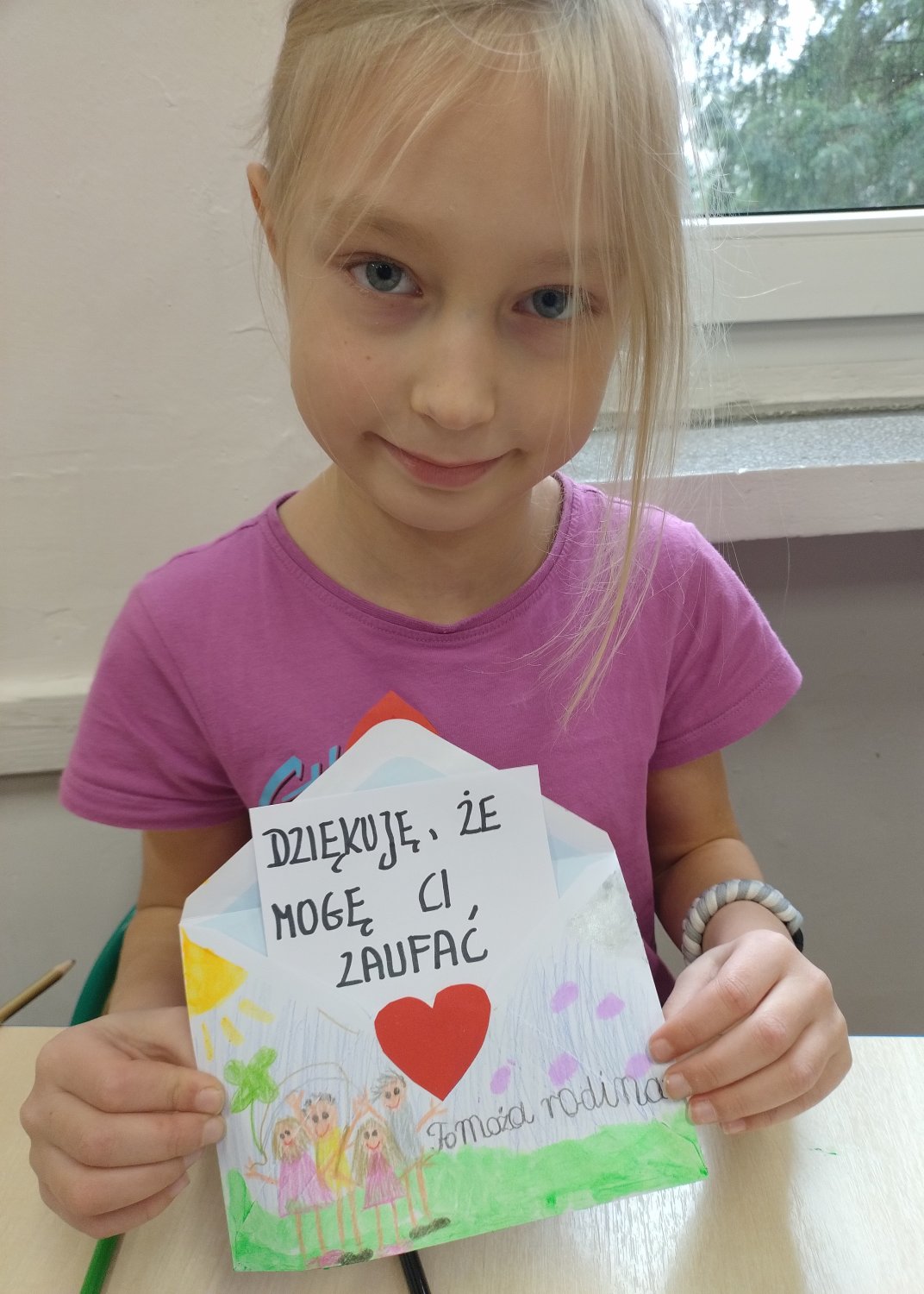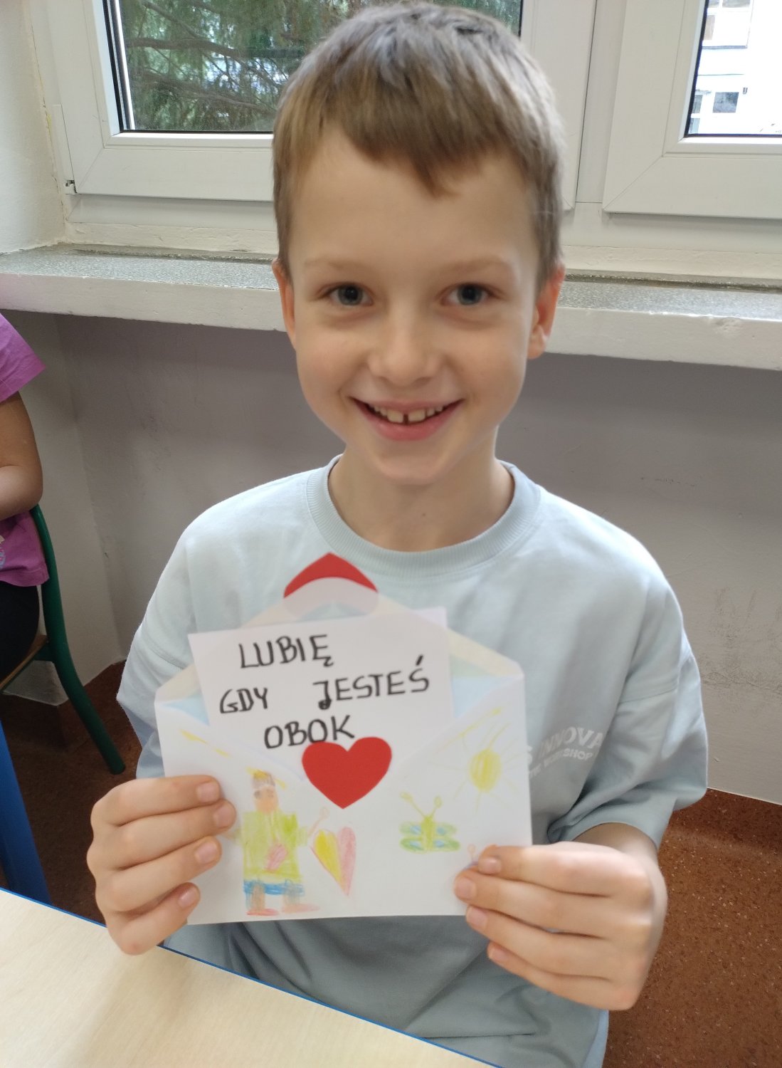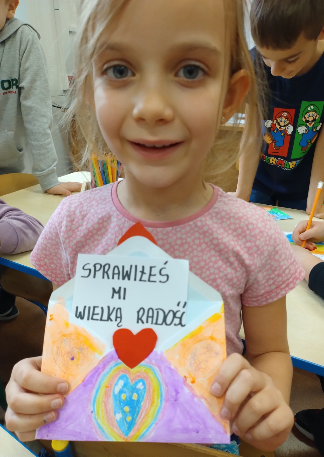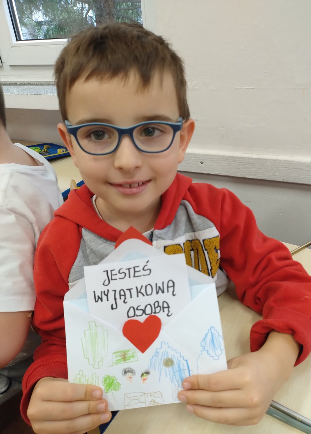 Następnie dzieci wykonały własną "kopertę życzliwości" - ozdobioną rysunkiem i wypełnioną miłymi słowami skierowanymi do wybranego kolegi lub koleżanki.