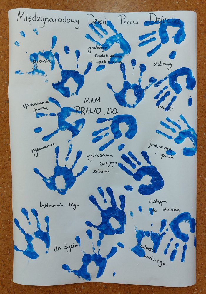 W ramach obchodów Dnia Praw Dziecka dzieci wysłuchały opowiadań z książki „Nic o nas, bez nas. Dzieci i ich prawa” Artura Maciaka, które wprowadziły je w tematykę praw dziecka. Po lekturze przeprowadziliśmy burzę mózgów, podczas której uczniowie wymieniali znane im prawa oraz sytuacje, w których mogą z nich korzystać. Zwieńczeniem zajęć było wykonanie wspólnego, kolorowego plakatu przedstawiającego najważniejsze – według dzieci – prawa każdego dziecka.