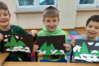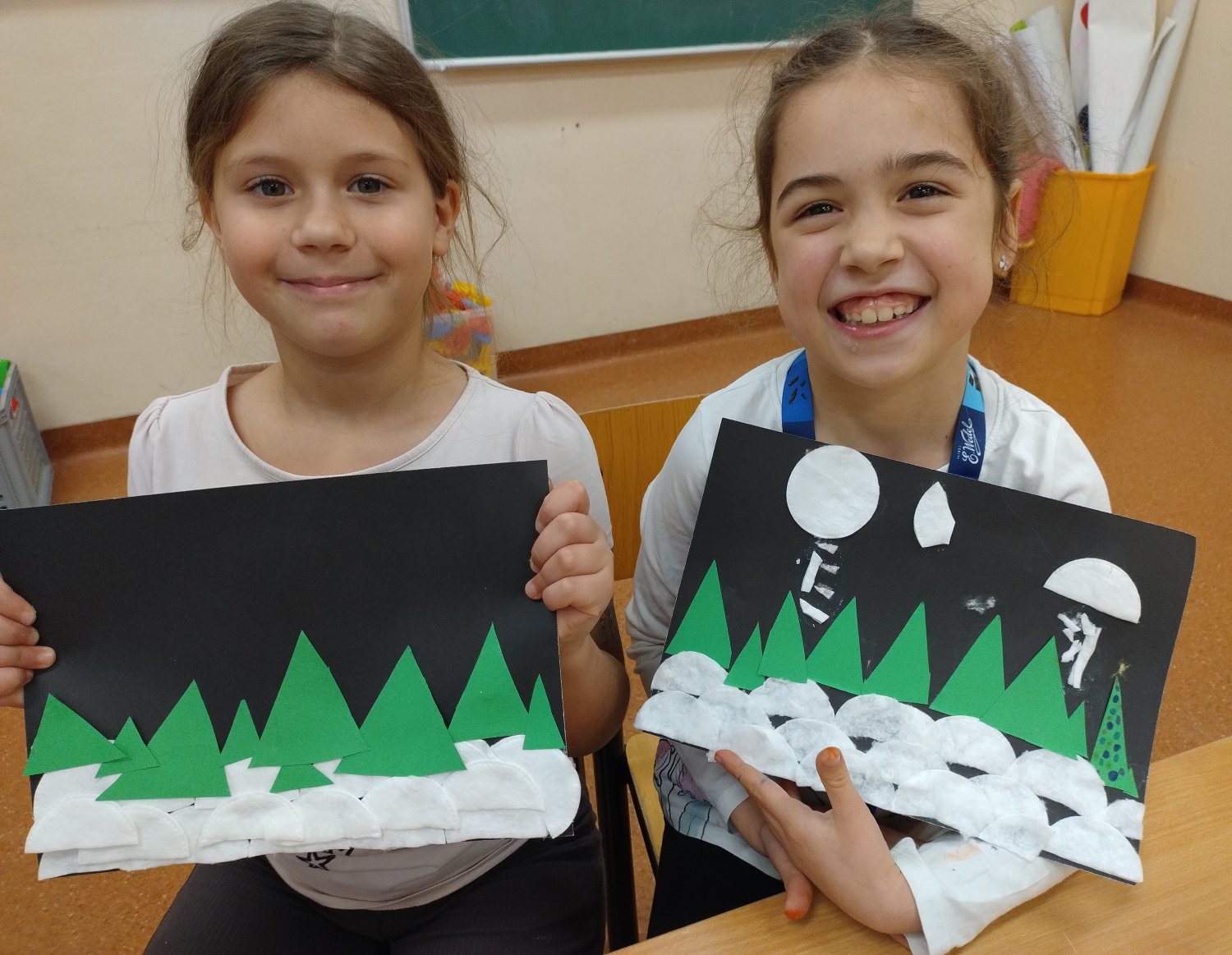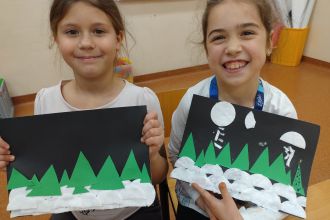 Nasze świetliczaki wykonały prace plastyczne, przedstawiające zimowy krajobraz.