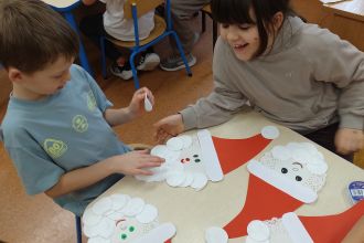 W naszej świetlicy odbyły się kreatywne zajęcia plastyczne, podczas których uczniowie wykonali Mikołaja z papierowych serwetek i wacików.