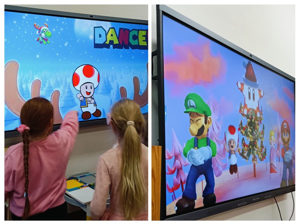 Dźwięki znanych hitów świątecznych opanowały sale. Świetliczaki śpiewały, tańczyły Just Dance, naśladowały ruchy z ekranu i wymyślały własne kroki. A nawet... Uratowaliśmy Święta Bożego Narodzenia w interaktywnej grze.