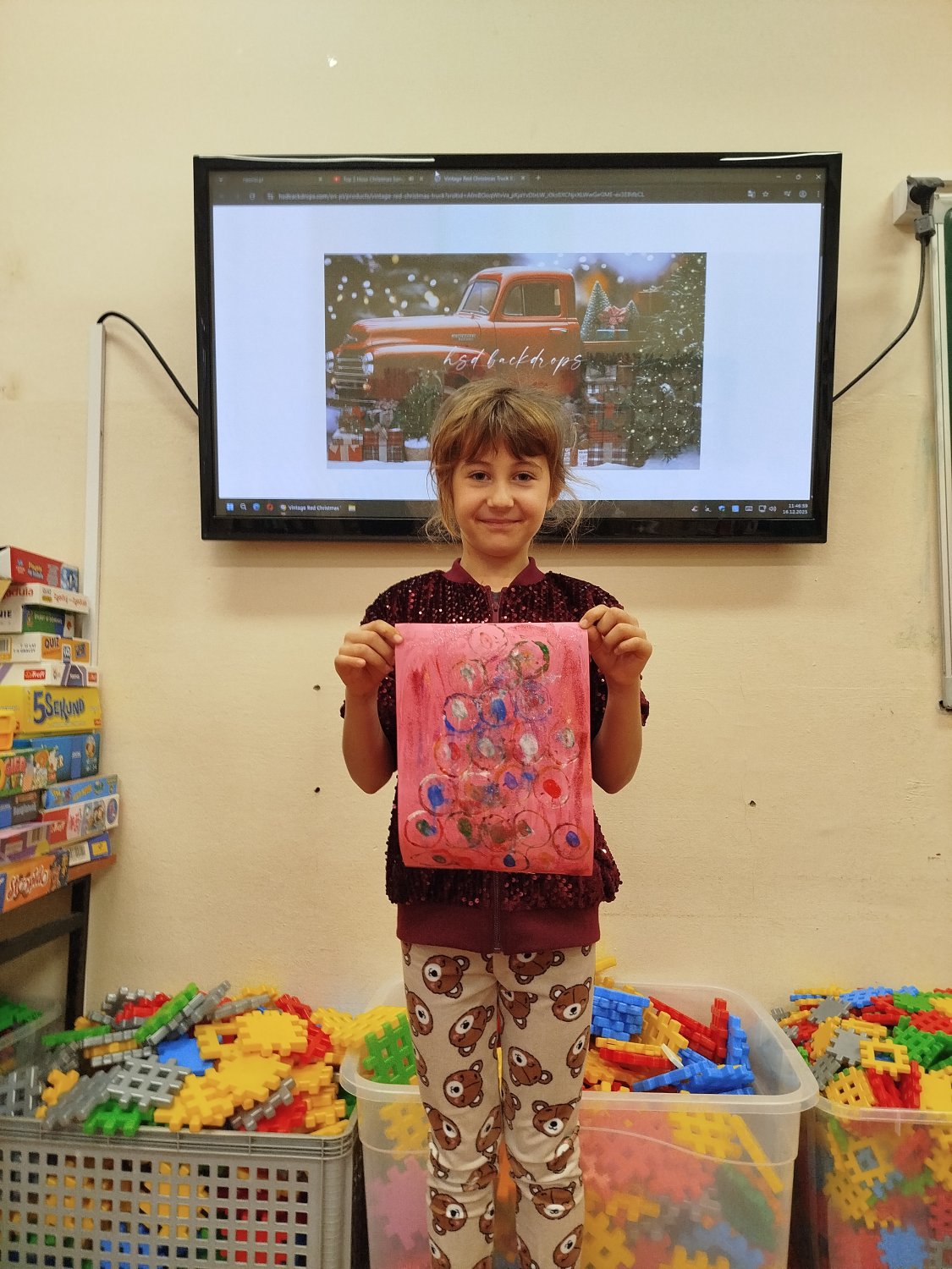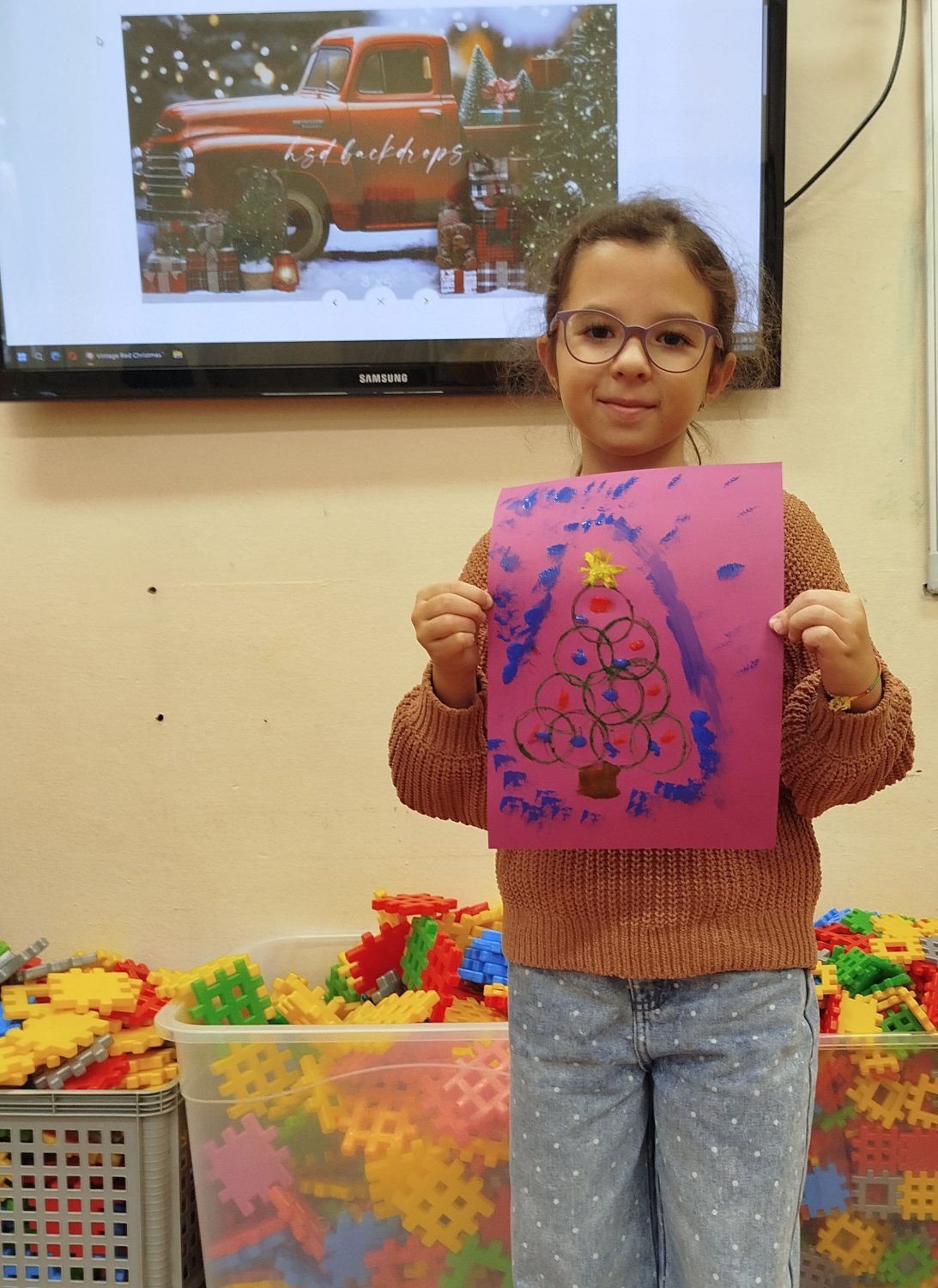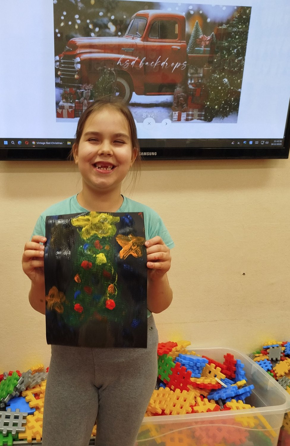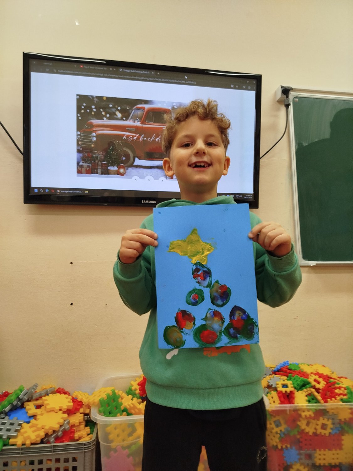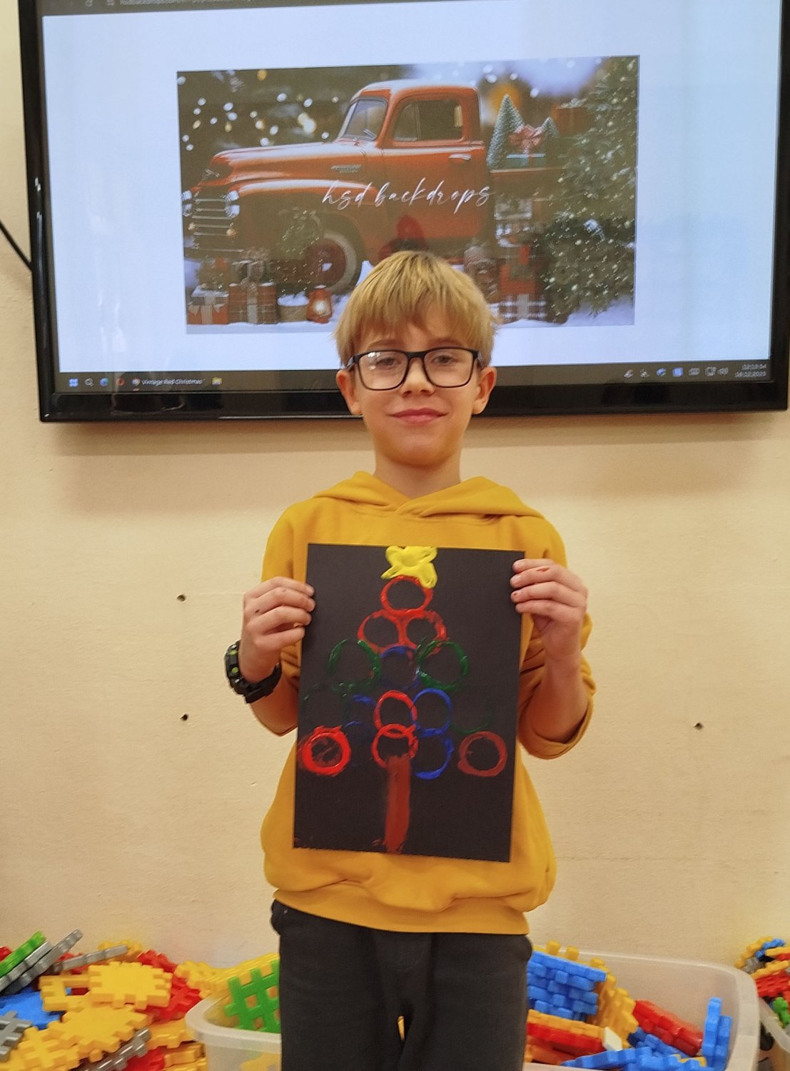 Nasze świetliczaki stworzyły z pomocą papierowych rolek i farb prace, które przedstawiają świąteczne choineczki.